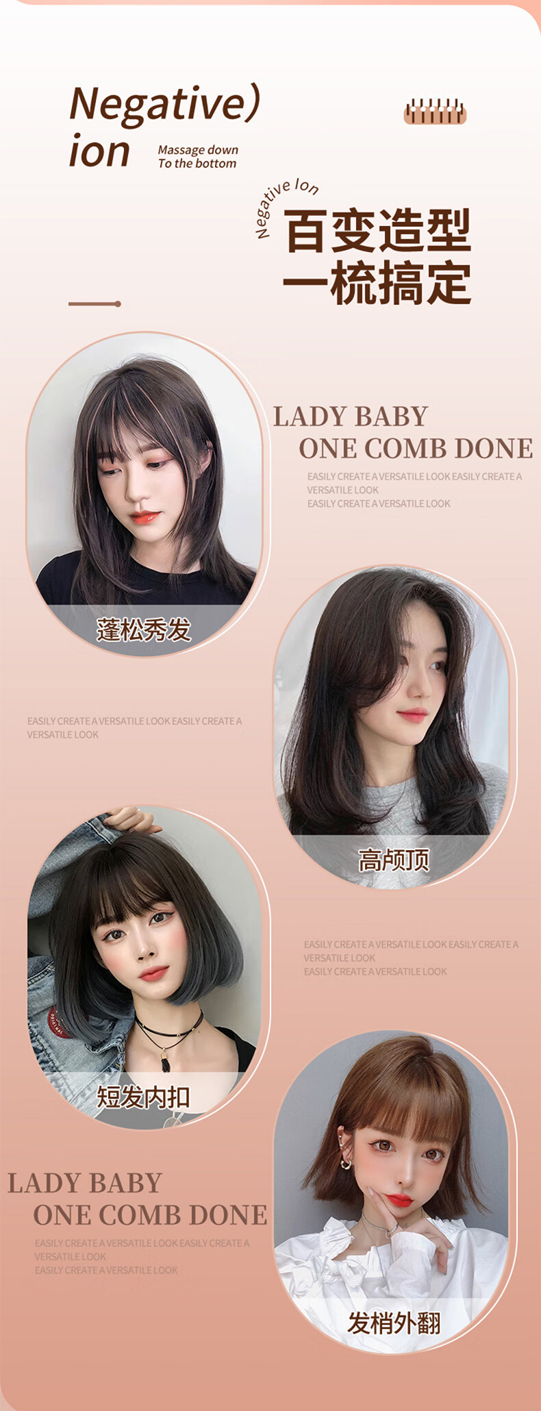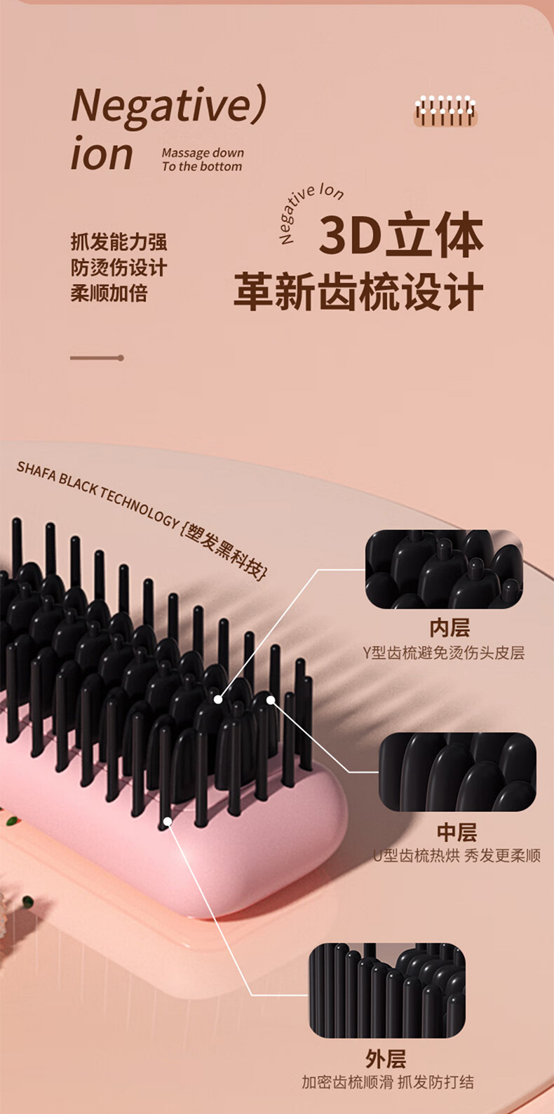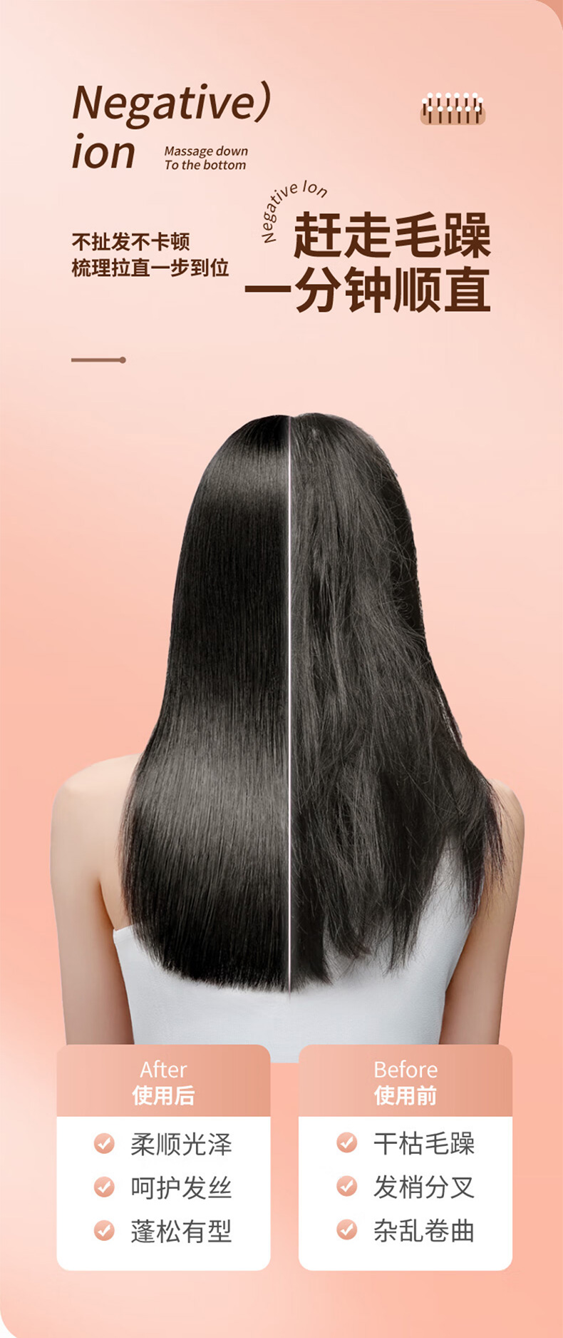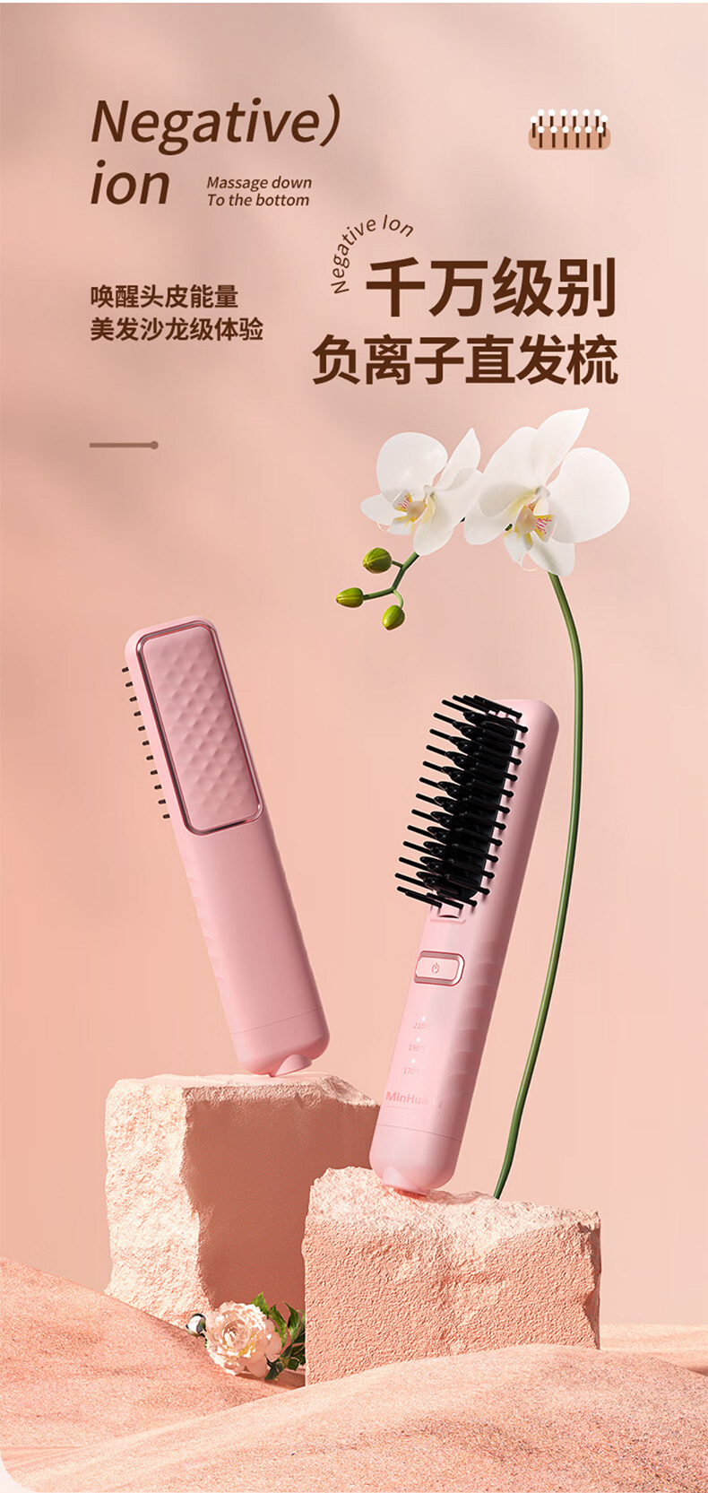 敏煌(MinHuang)负离子直发梳卷发棒直发夹板不伤发家用卷发神器造型梳烫发宿舍可用 XN-Z06 樱花粉