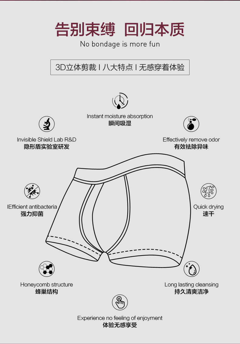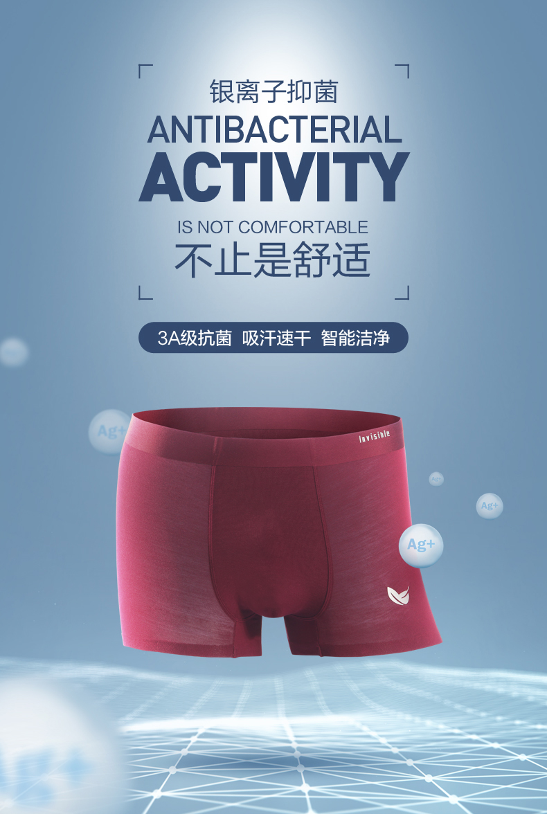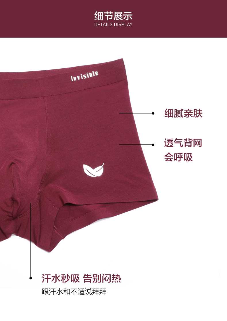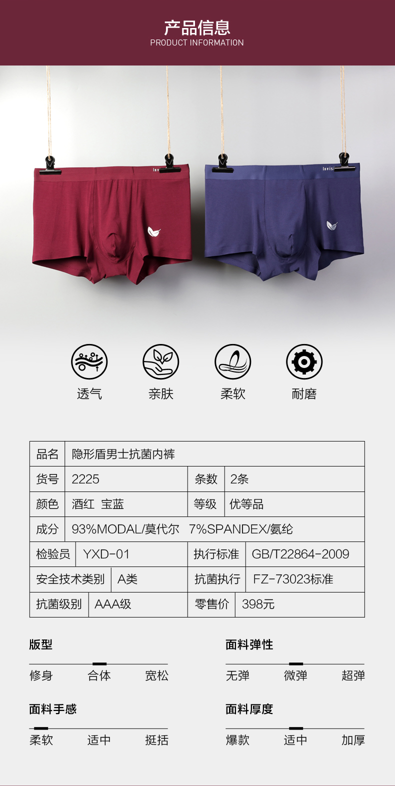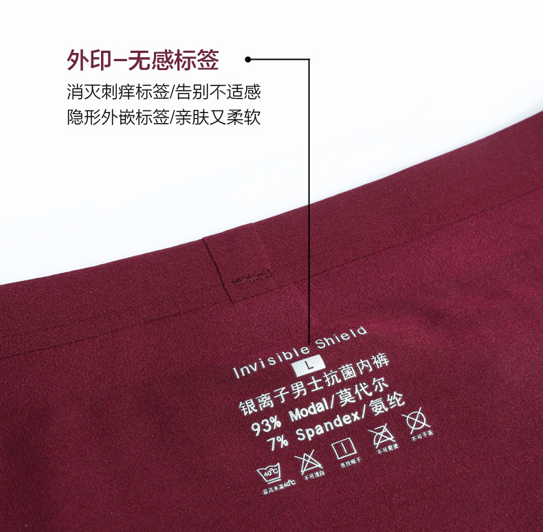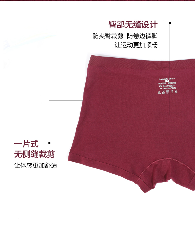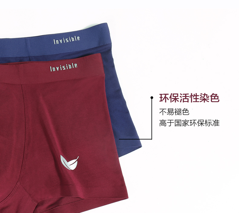 隐形盾 抗菌无痕亲肤柔软透气平头四角男士内裤2条装