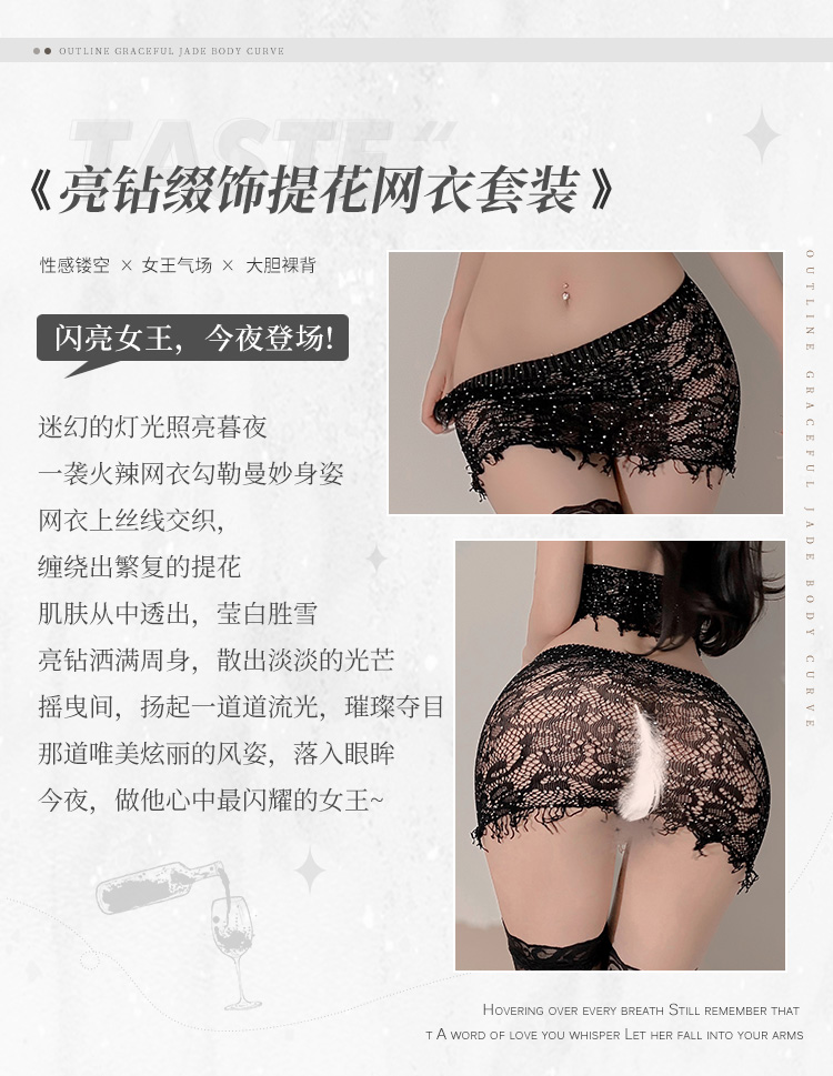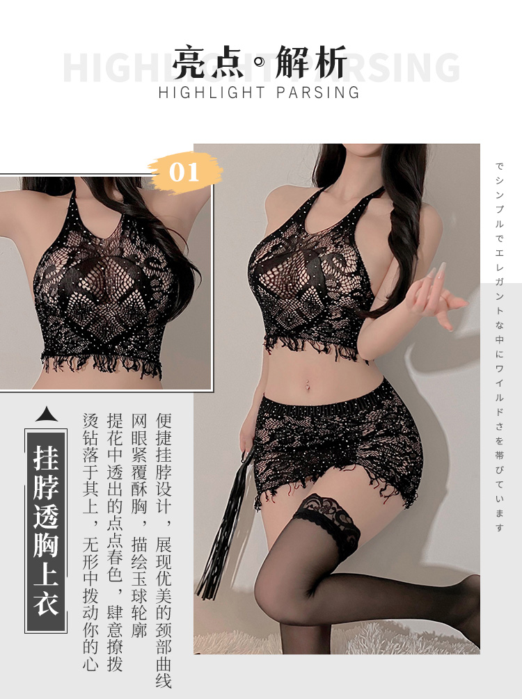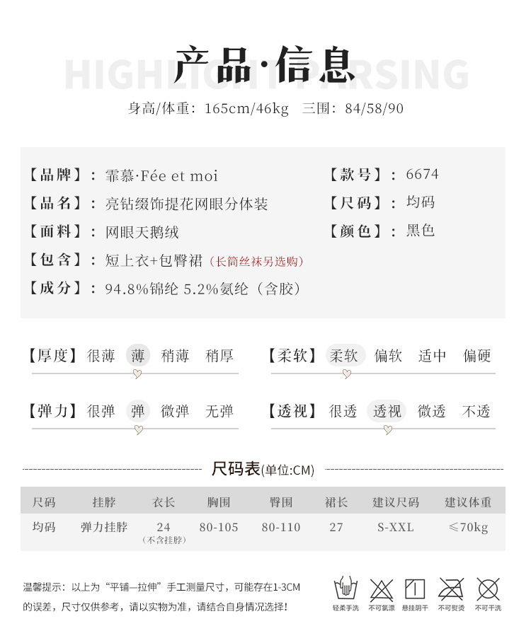 【霏慕】亮钻缀提花网眼分体装6674