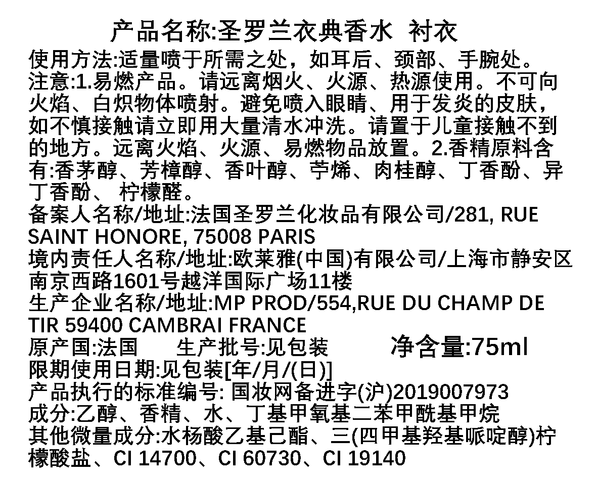 YSL圣罗兰 衬衣香水