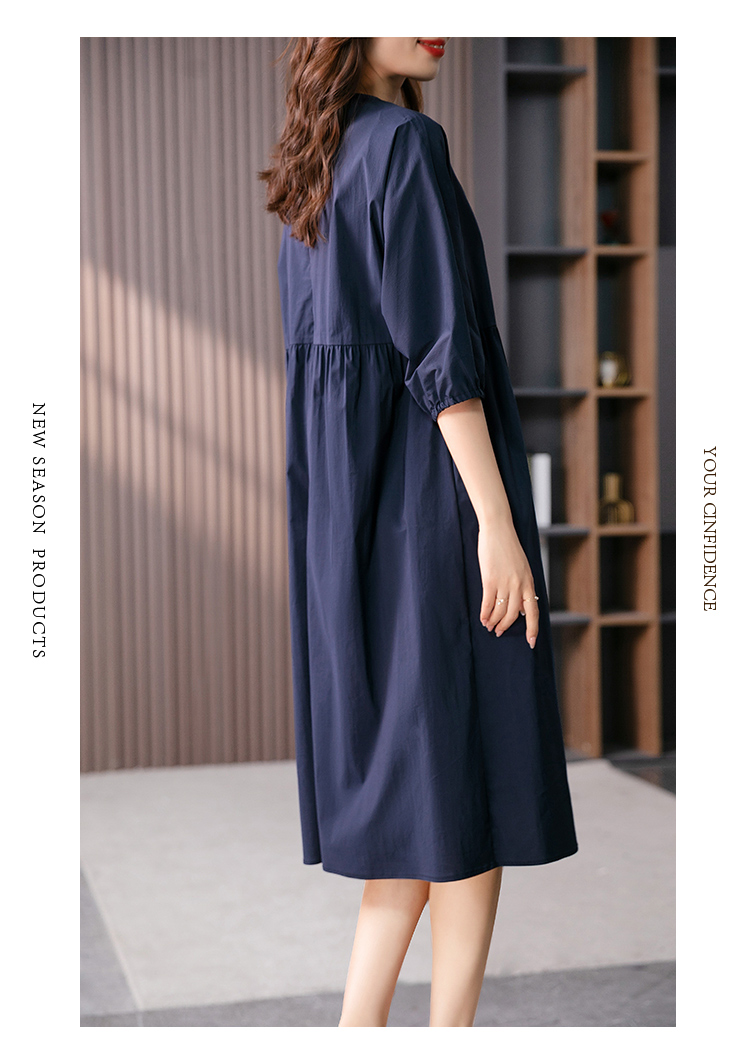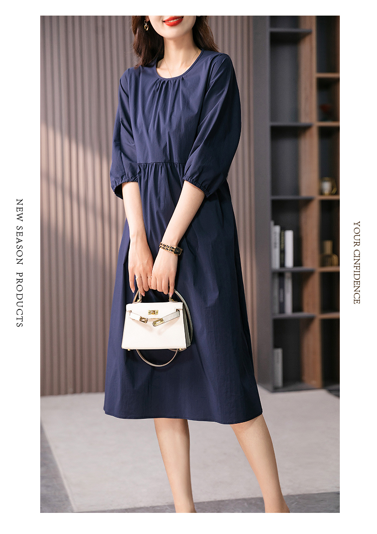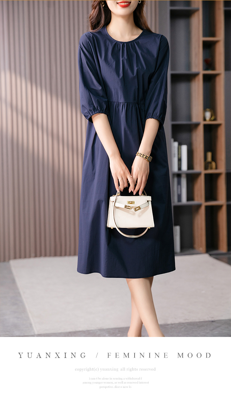 87402原形法式泡泡袖连衣裙女2024春夏季新款高级感温柔风宽松中长裙子