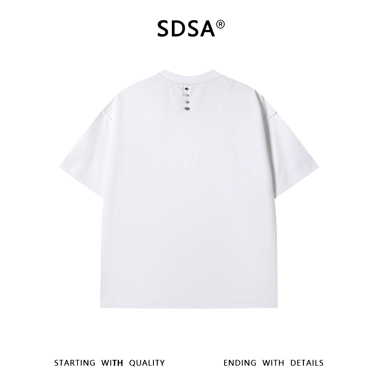 SDSA男装2026新款轻奢韩系简约圆领短袖T恤后背纽扣装饰设计百搭
