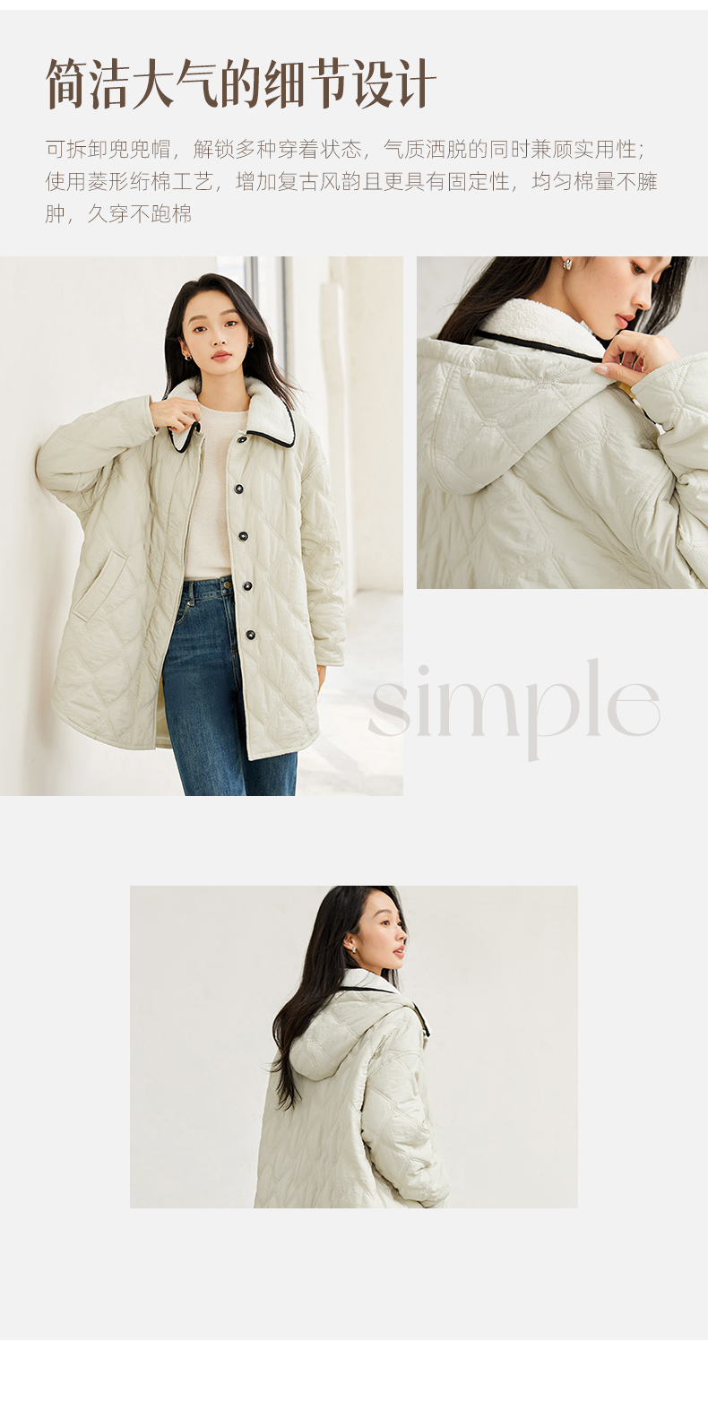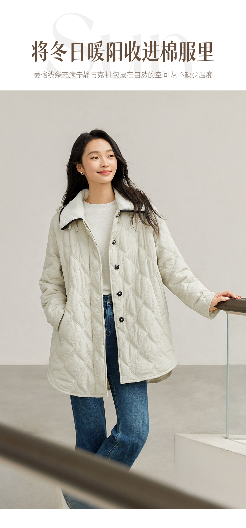 IC 秋冬复古菱形格设计绗棉外套女新款高级感通勤优雅上衣
