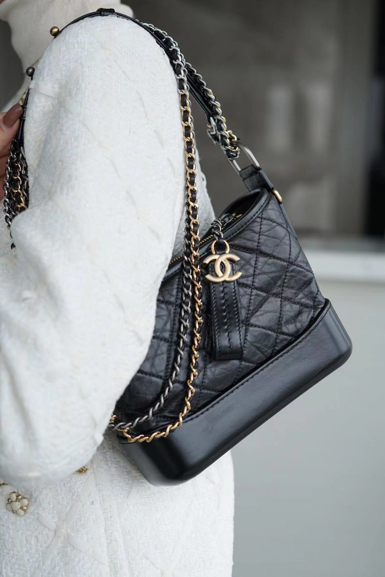 香奈儿-GABRIELLE 经典流浪包 正品皮 黑色 双尺寸(LZ)