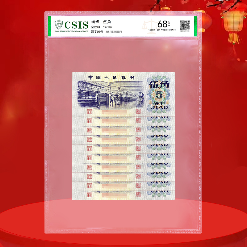 四版纸币5枚小套装 封装评级版 含10元、5元、2元、1元、2角