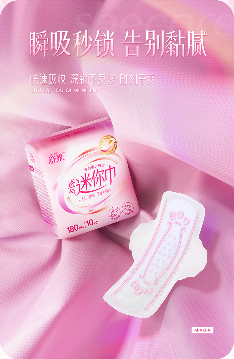 舒莱透气迷你卫生巾180mm组合带护翼8包80片