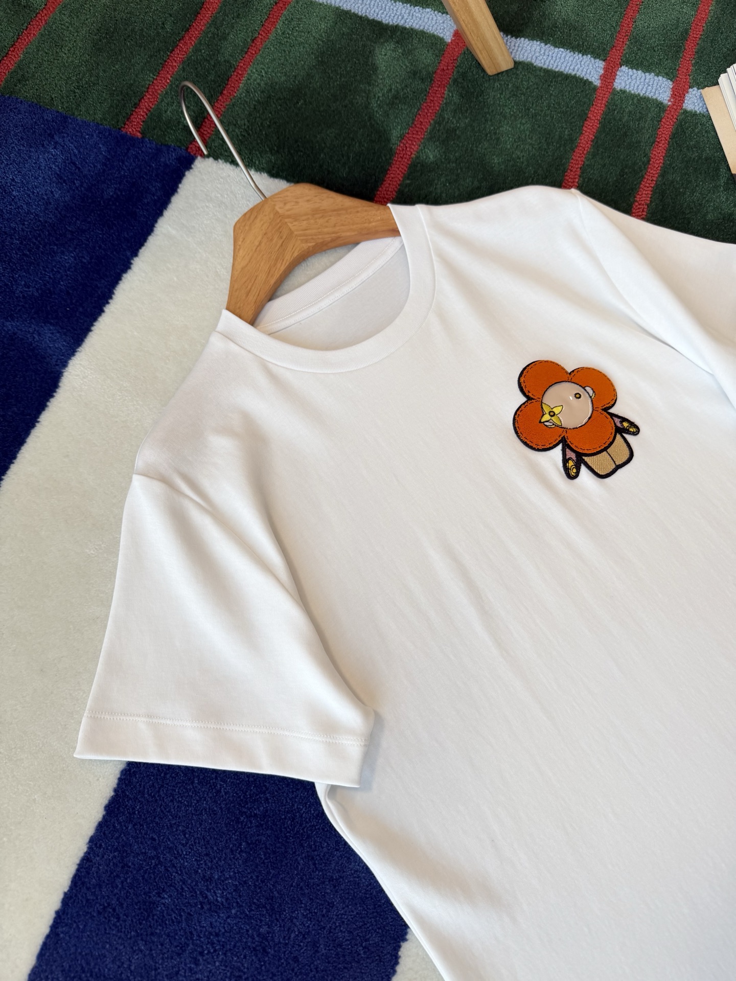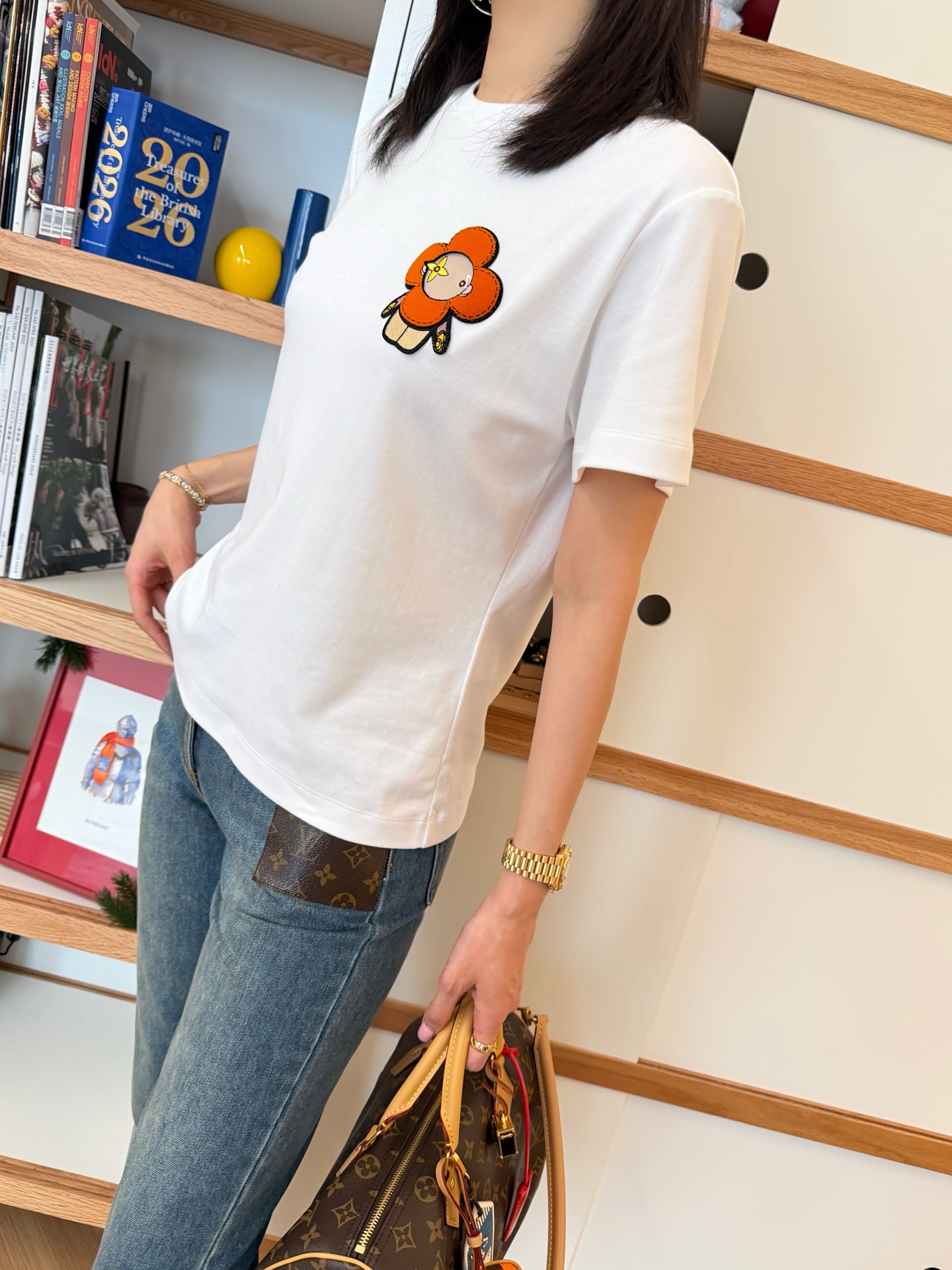 【新款上线】新款🆕全新上线‼️ Vivienne T恤,显瘦又减龄绝了👏胸前Vivienne贴饰灵动有趣✨Monogram花卉标识彰显摩登格调〰️选用柔软纯棉面料,耐穿抗磨,穿着舒适不拘束❕❕质感超棒🤩🔜精致摩登的章仔,工艺复杂细致✨打造日常随性风范〰️为衣橱注入新意☑️率性优雅,气场独特💫尺码SML