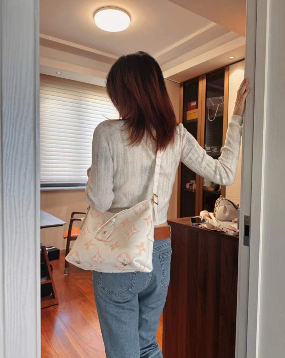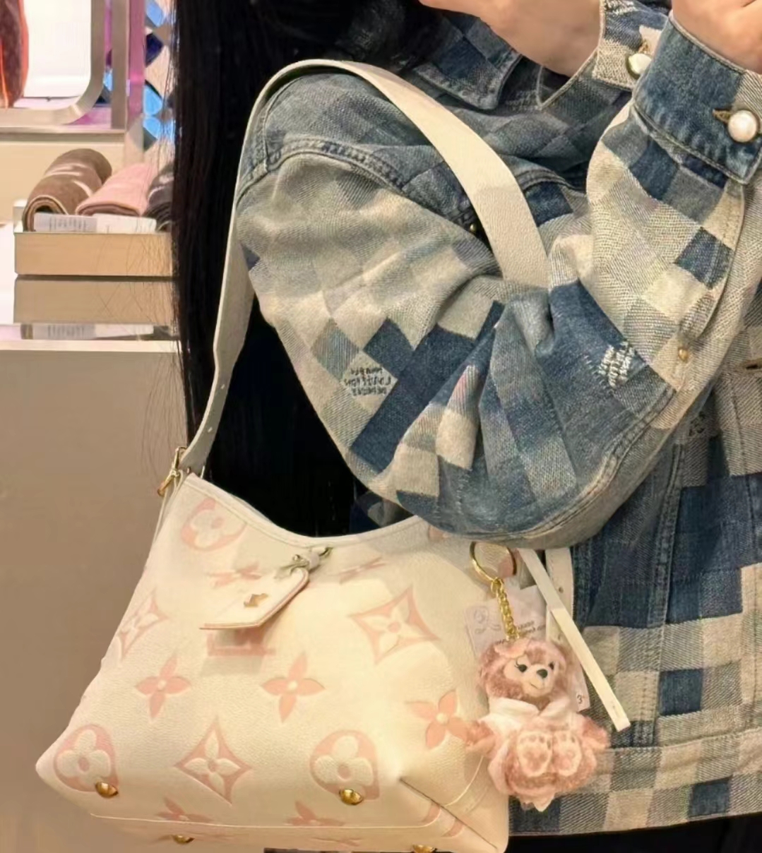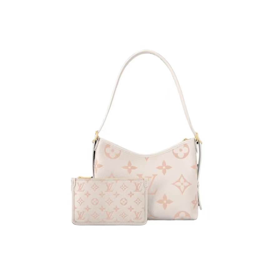 驴家 CarryAll PM 可调节肩带拉链开合 压花粒面皮革 手提单肩包 白粉色(CB)