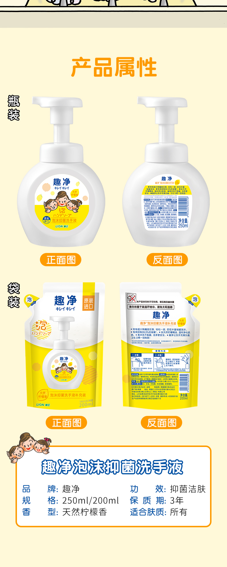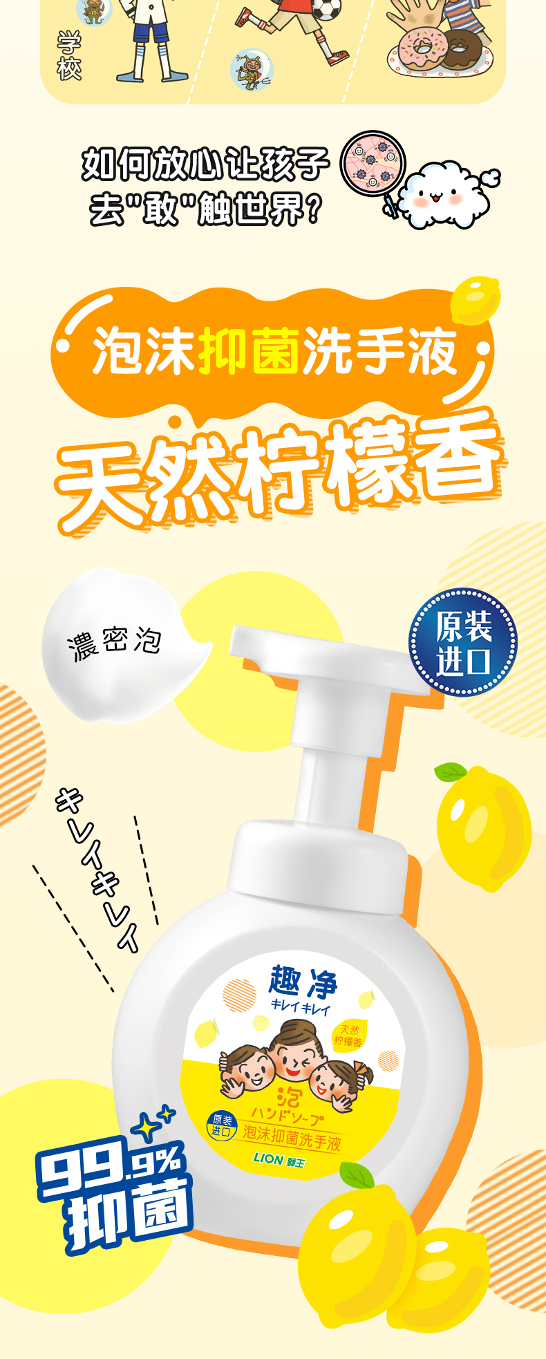 LION狮王 趣净泡沫抑菌洗手液(天然柠檬香)250ml