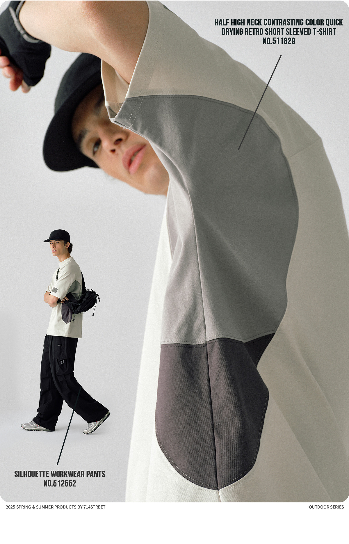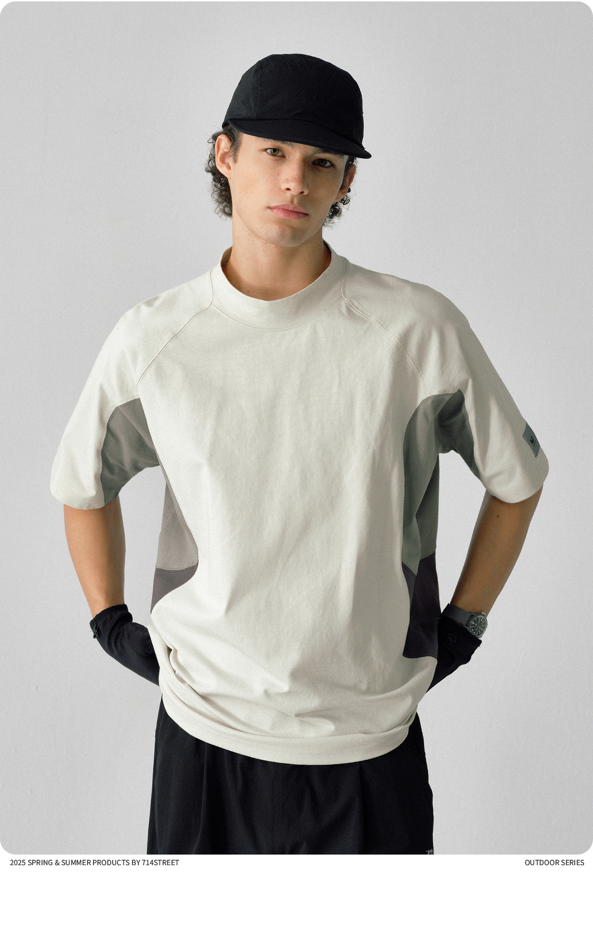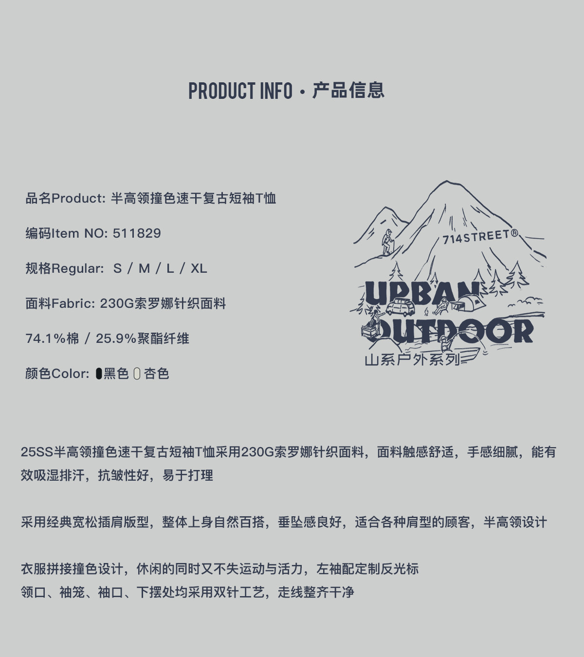 714street防晒速干复古半高领短袖T恤男夏季新款宽松凉感运动上衣