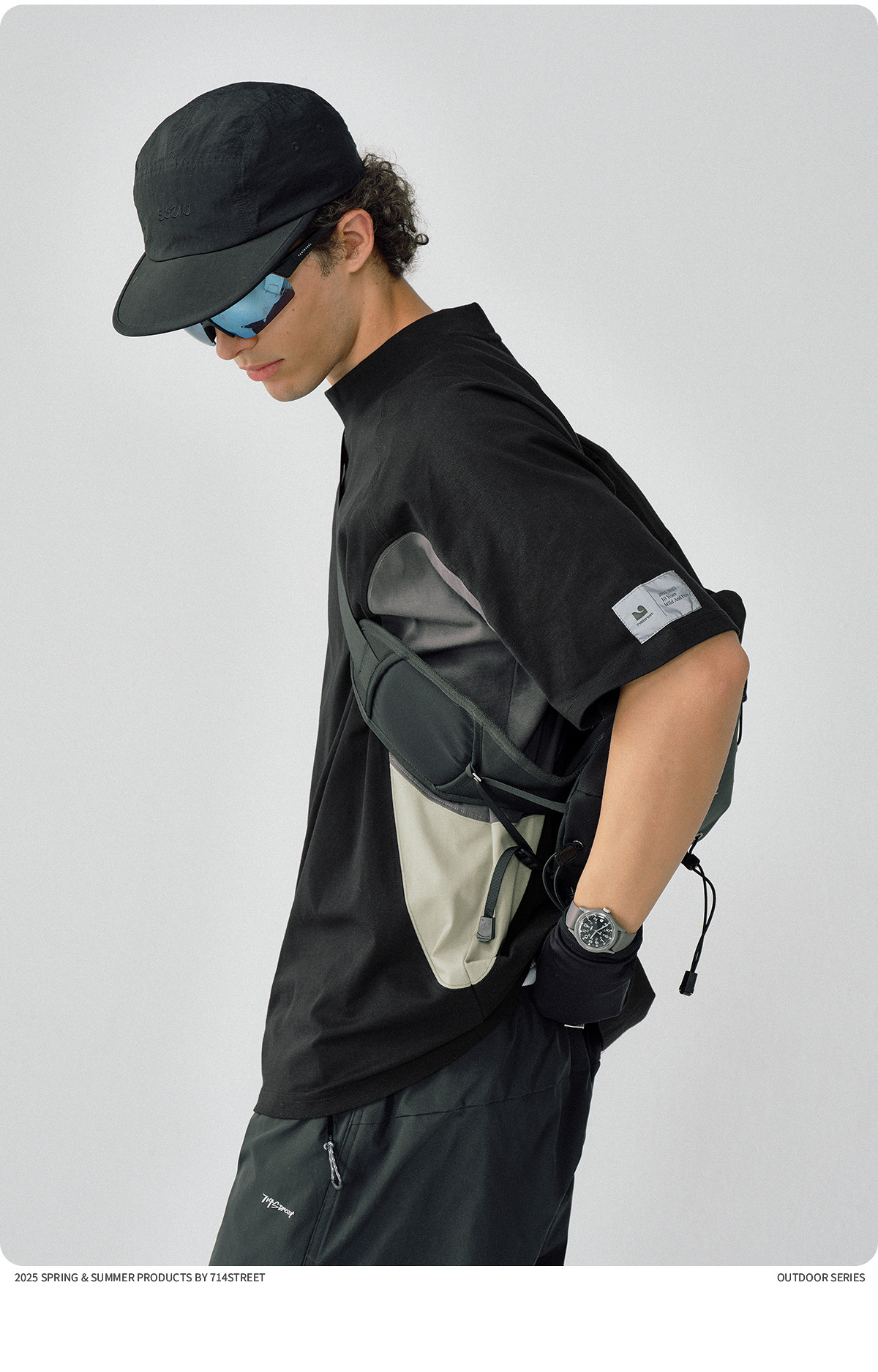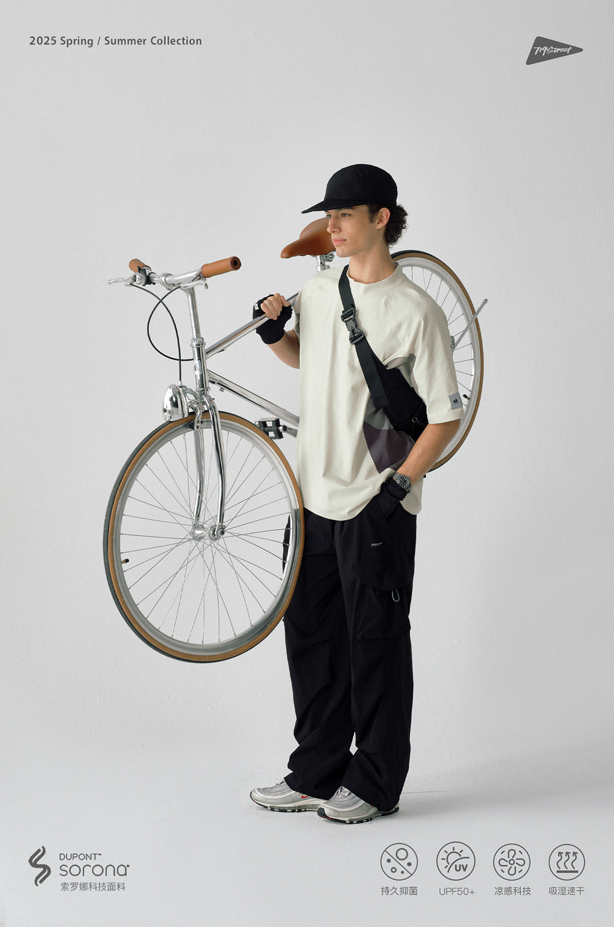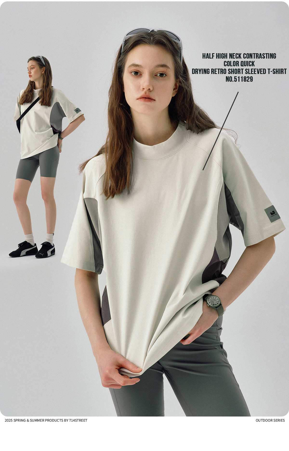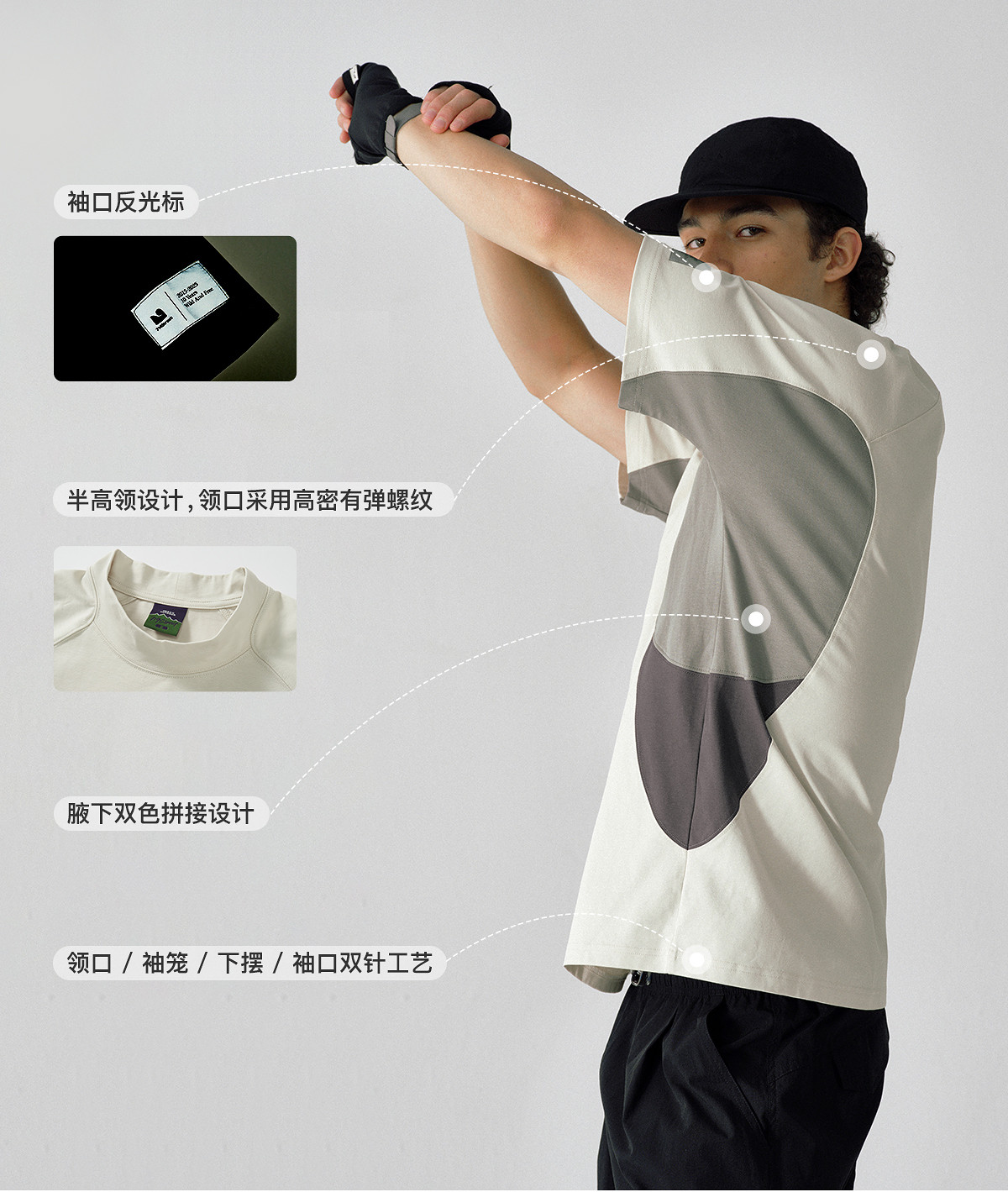 714street防晒速干复古半高领短袖T恤男夏季新款宽松凉感运动上衣