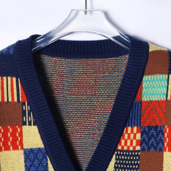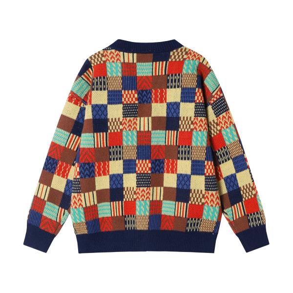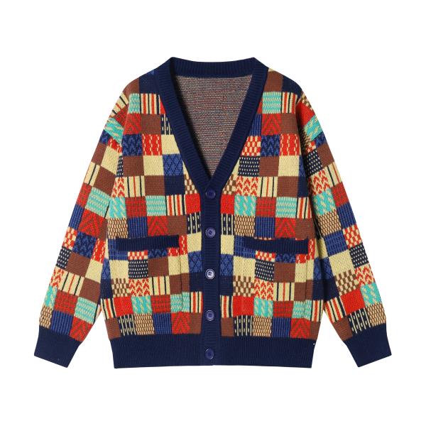 MY141秋冬季新款港风个性撞色格子针织开衫复古宽松百搭休闲上衣