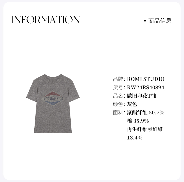 ROMI STUDIO“美式复古” 花纱感圆领做旧印花短袖T恤 RW24RS40894