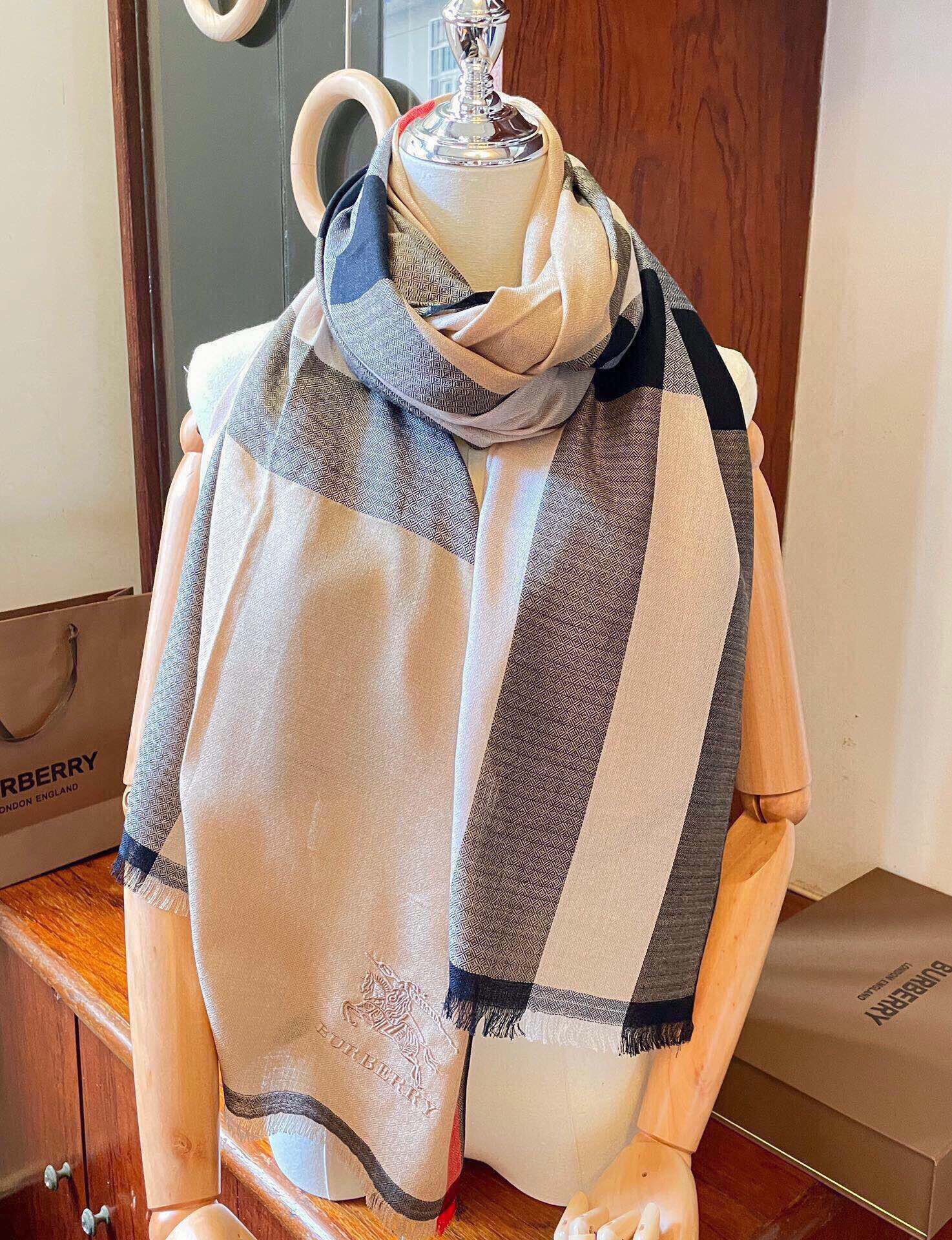 巴宝莉采用经典原版马标工艺绣马!!!!纯正客供克什米尔山羊绒300支羊绒加密处理.手感好到没朋友.糯软轻薄透气.现在空调室地铁里必备款!颜色多次打样全部采用进口染料.染色亮度色泽度饱和度都是一等一的强.200*90加宽尺寸.规格也够大.因为客供原料.所以能出的货品不多.再过几天想抢都抢不到~