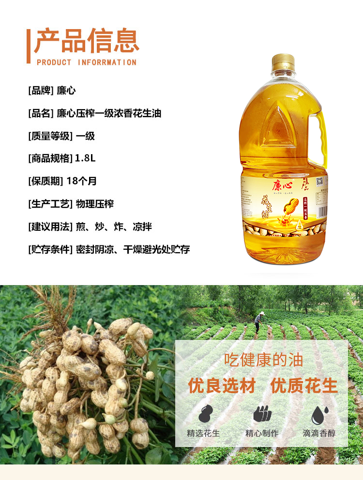 广东湛江廉心花生油(压榨一级浓香)1.8L/瓶