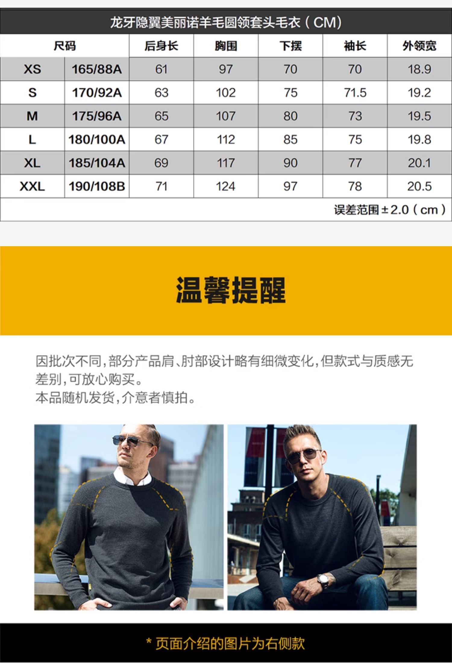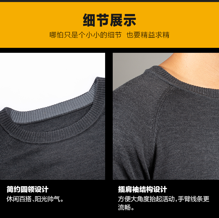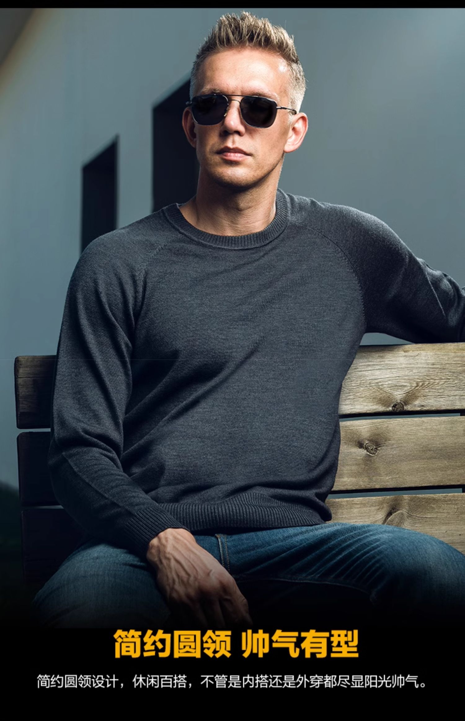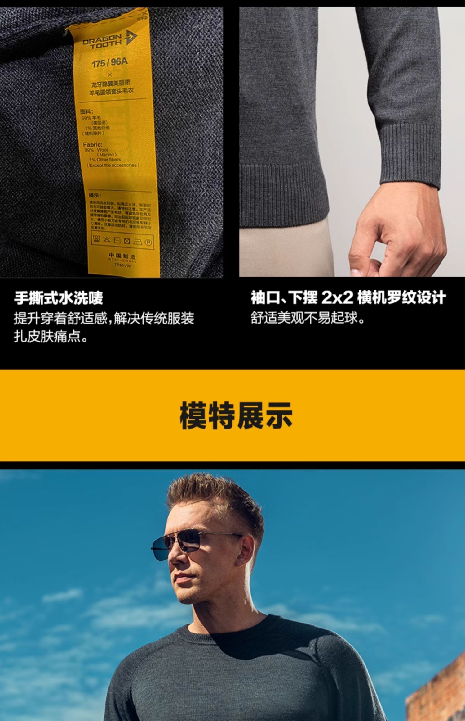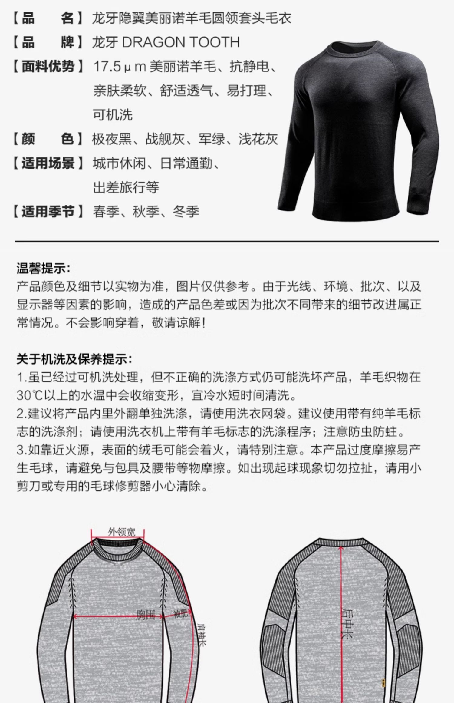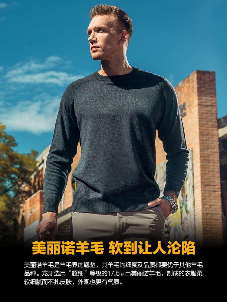 龙牙隐翼美丽诺羊毛圆领套头毛衣