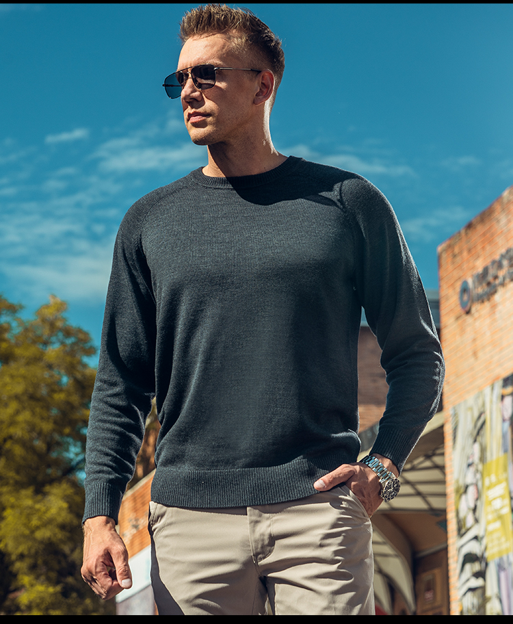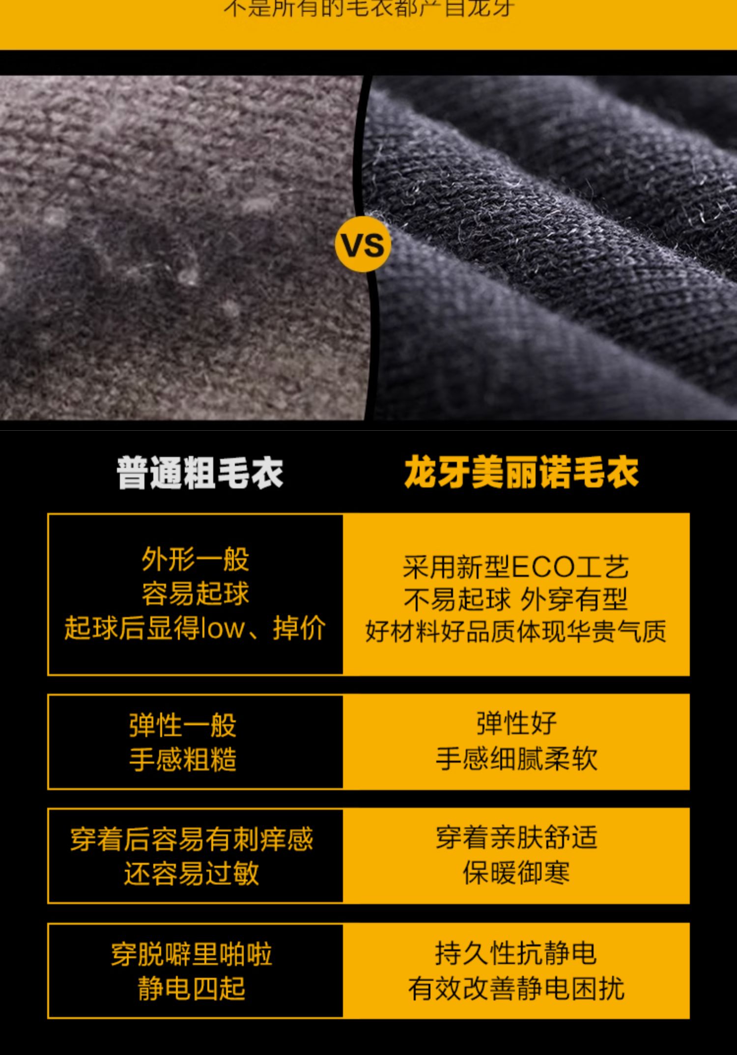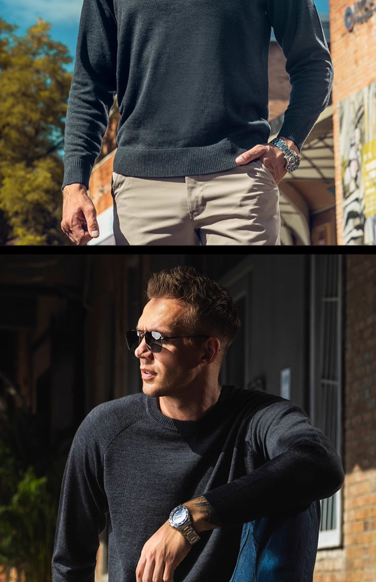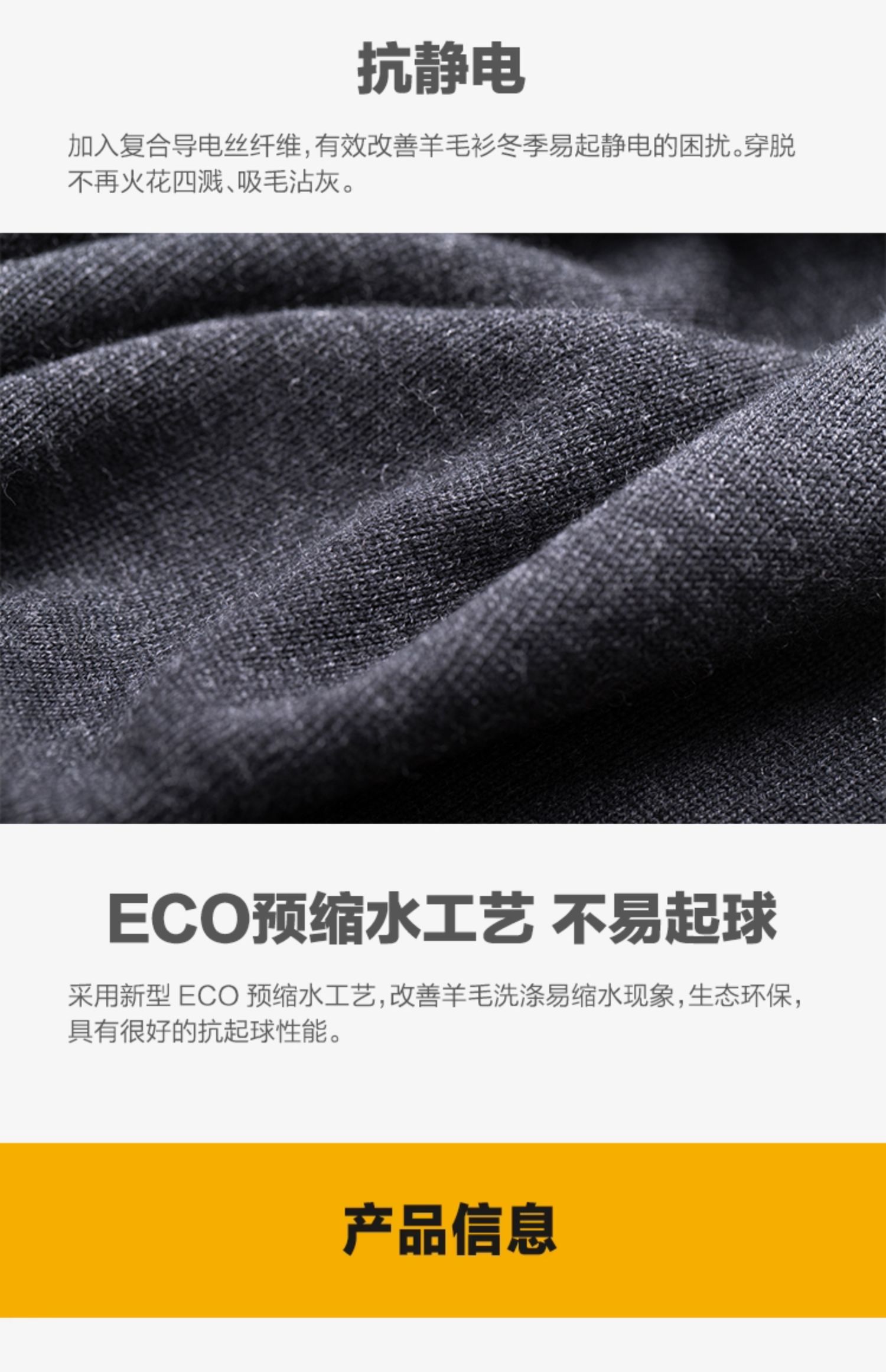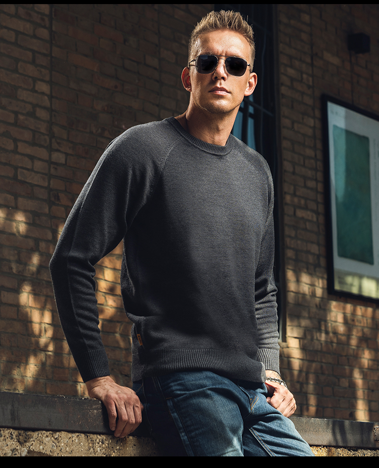 龙牙隐翼美丽诺羊毛圆领套头毛衣