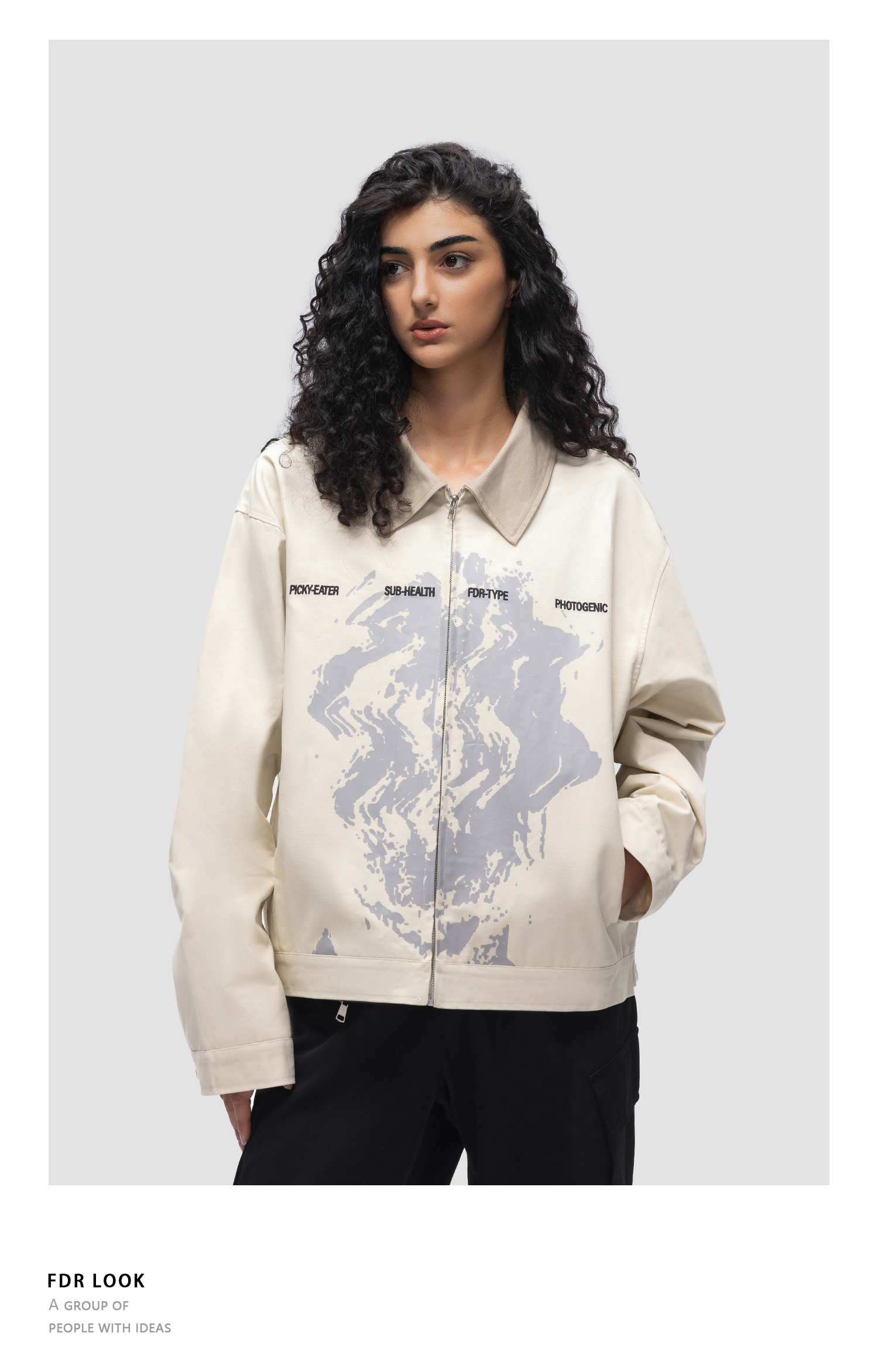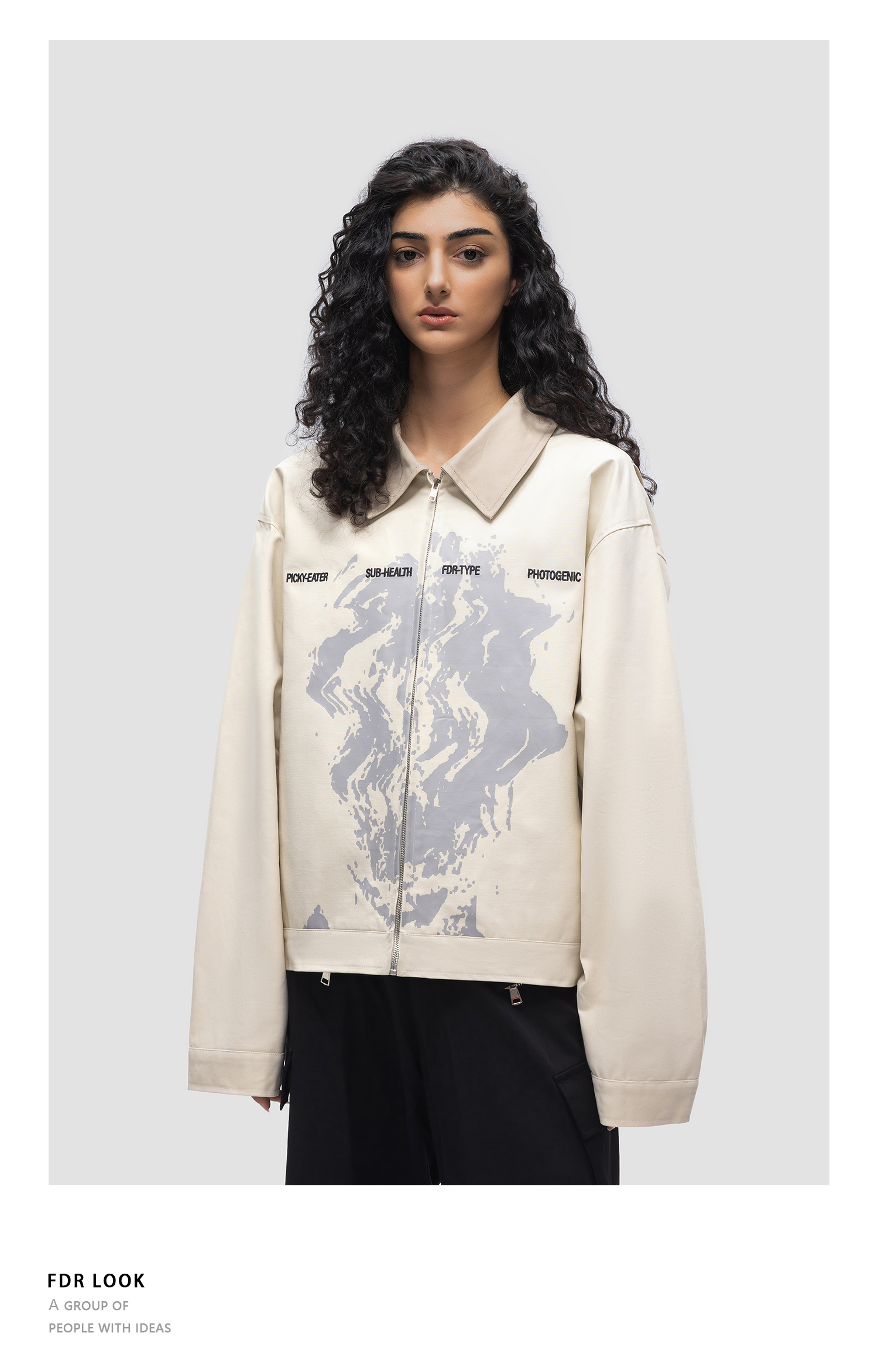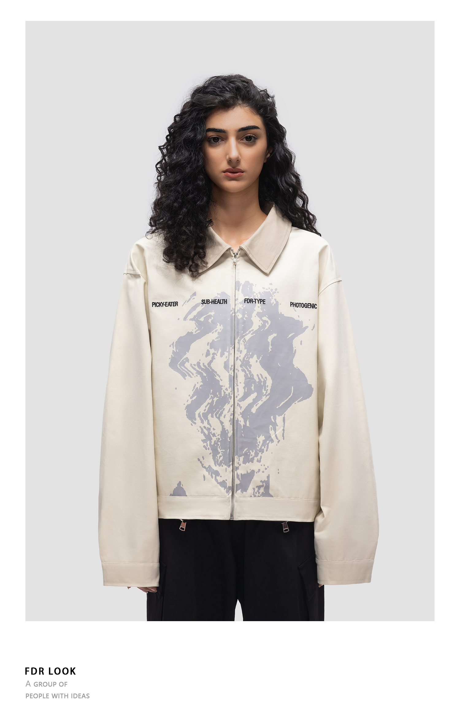 FDR原创国潮新款抽象人像夹克男女秋季美式潮牌外套情侣宽松上衣