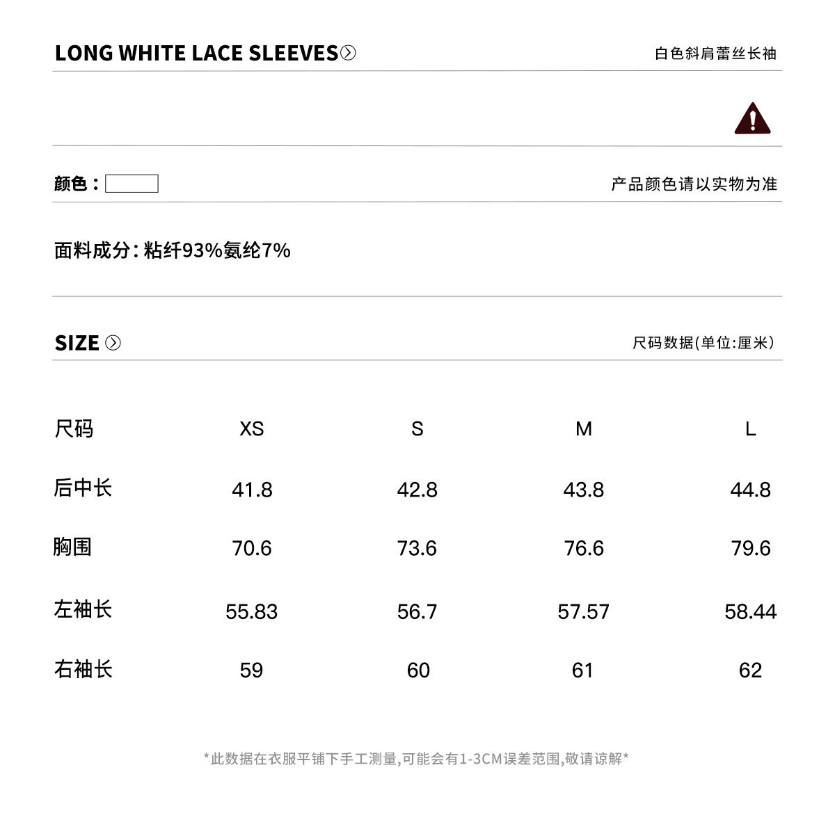 Ariseism 美式复古白色斜肩蕾丝长袖t恤女秋季新款修身上衣