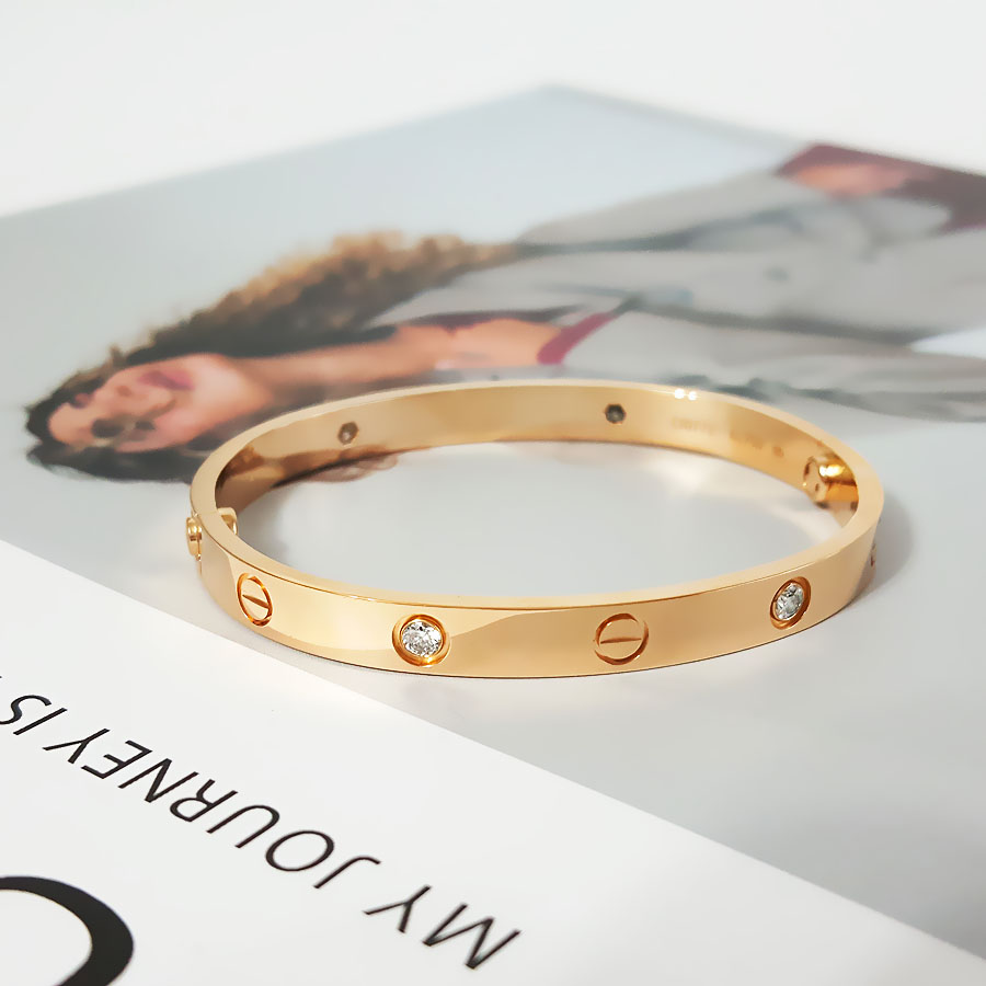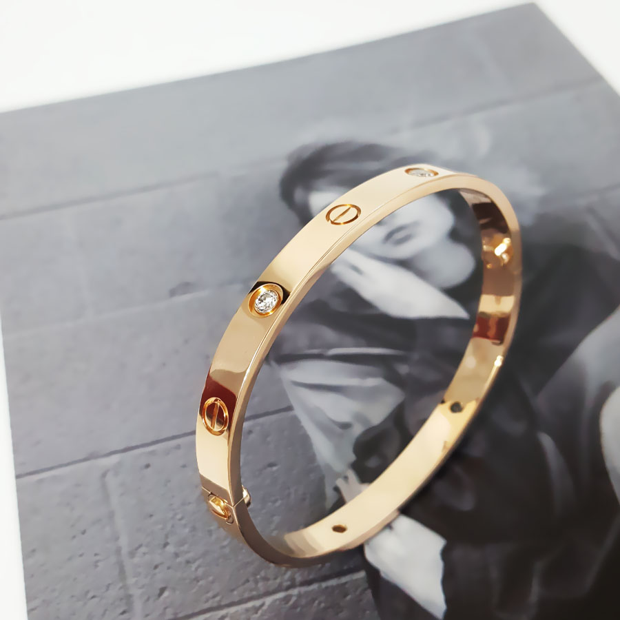 款式 | 18K玫瑰金宽版四钻LOVE四代手镯 |