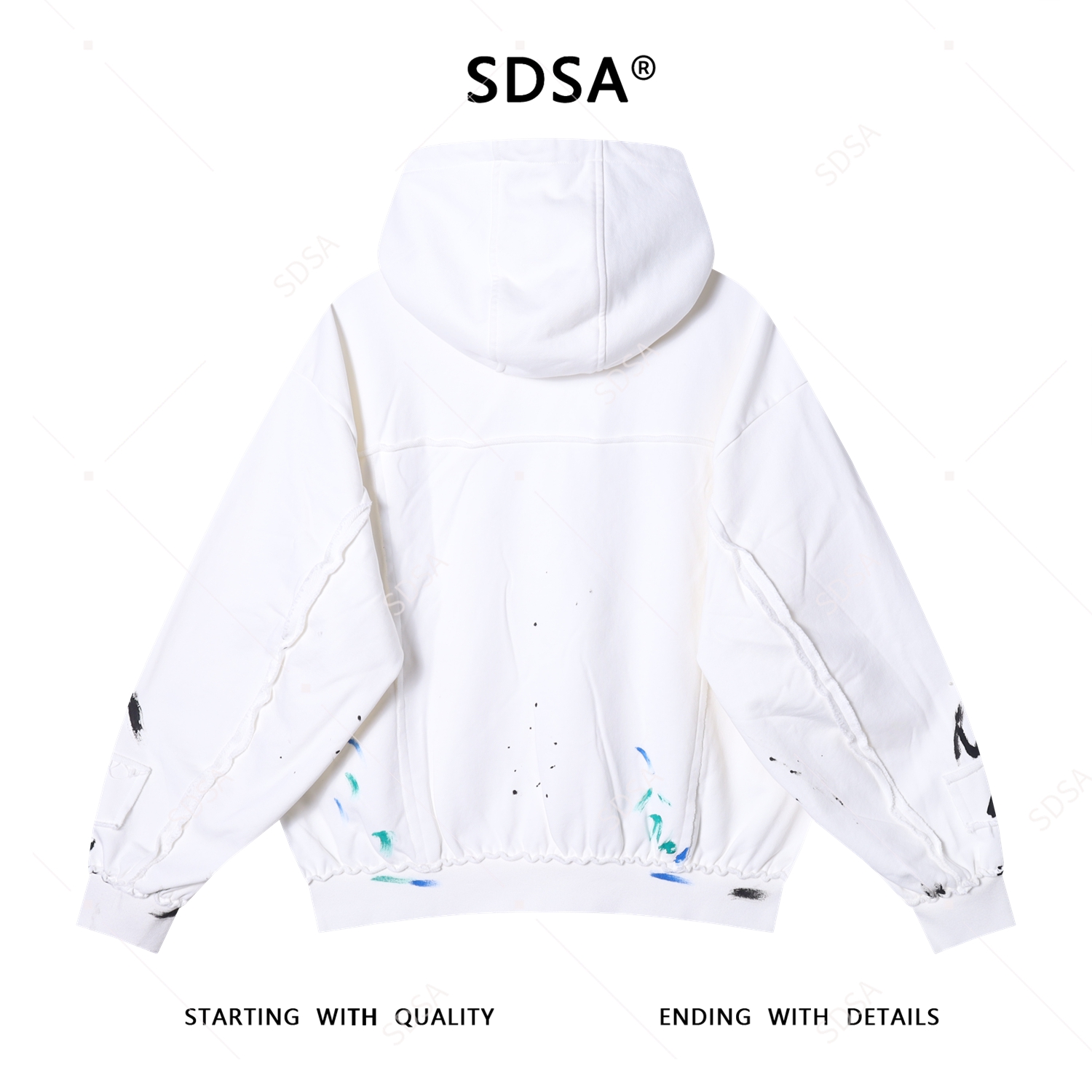 5238SDSA男士秋冬新款痞帅男装手绘泼墨连帽卫衣刺绣字母设计百搭上衣
