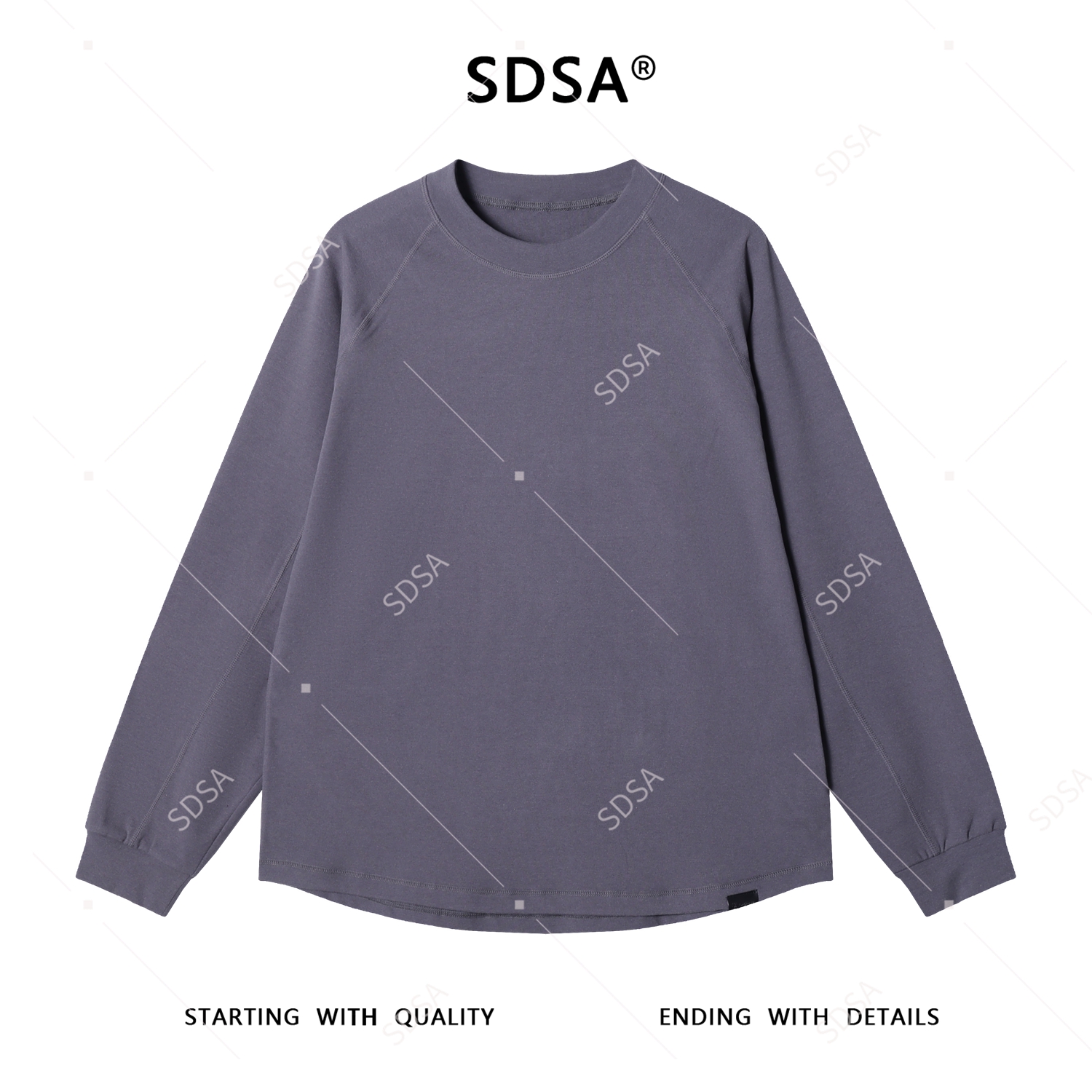 SDSA秋冬新款痞帅男装韩版简约纯色压线圆领长袖T恤百搭舒适上衣