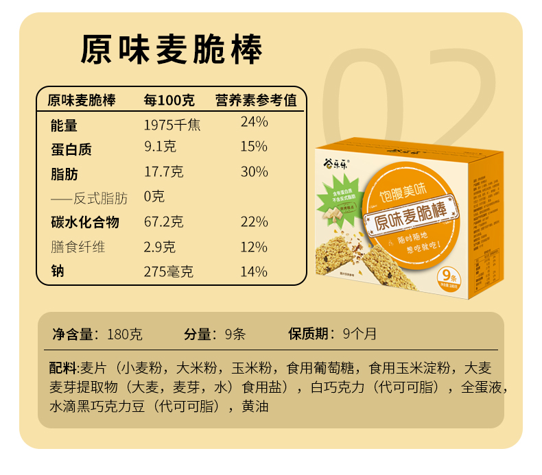 原味麦脆棒 180克 9根/盒