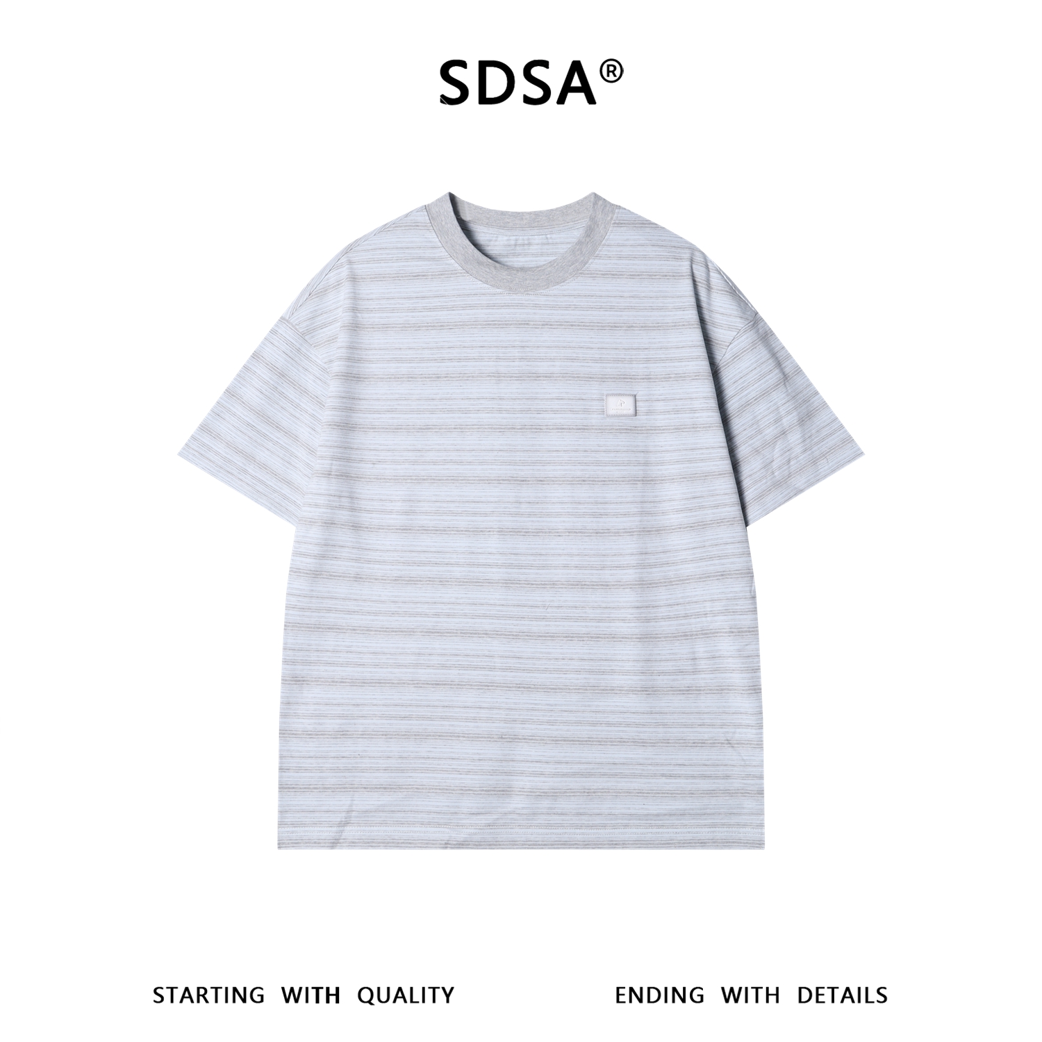 SDSA男装2026新款轻奢韩版撞色细条纹圆领短袖T恤百搭宽松上衣