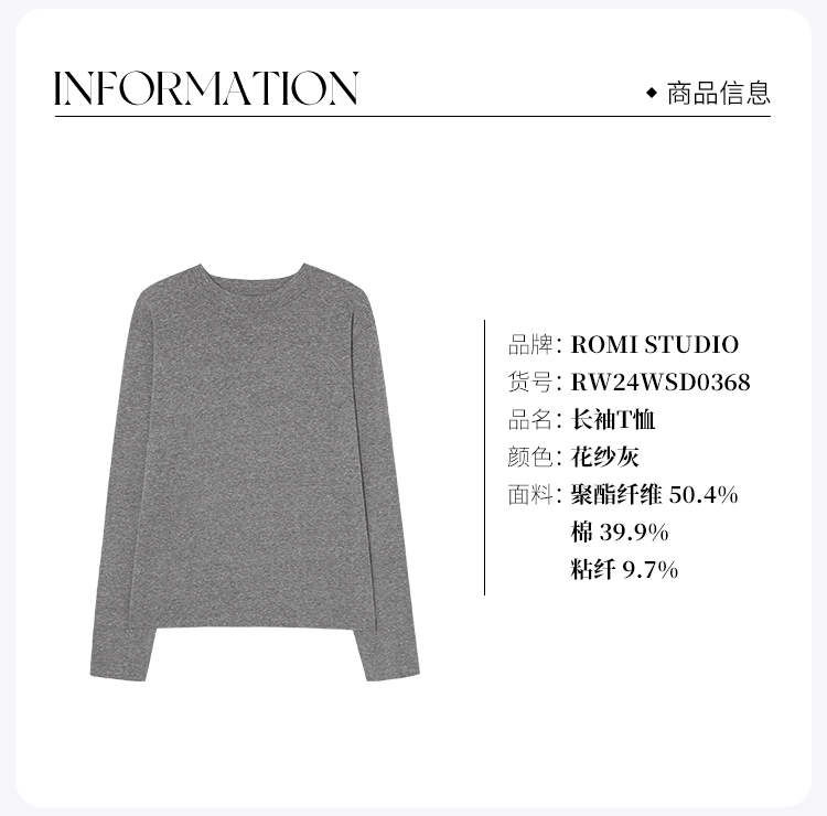 ROMI STUDIO“基础优雅” 甄选棉混纺肤感圆领长袖T恤 RW24WSD0368