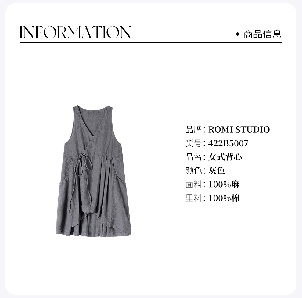 ROMI STUDIO“心绪共鸣” 100%亚麻酵洗磨毛肌理感无袖背心422B5007