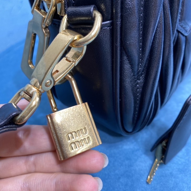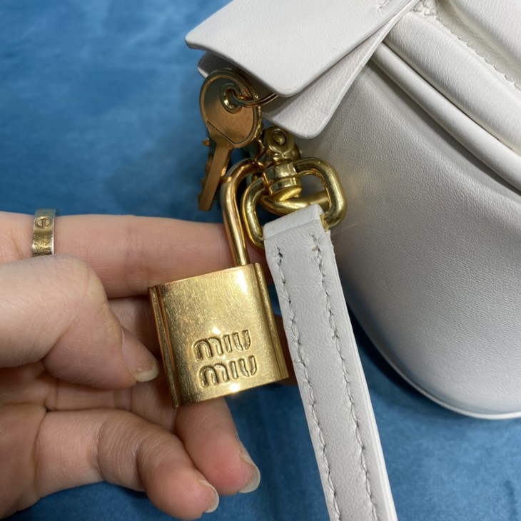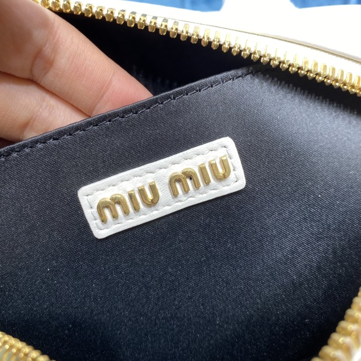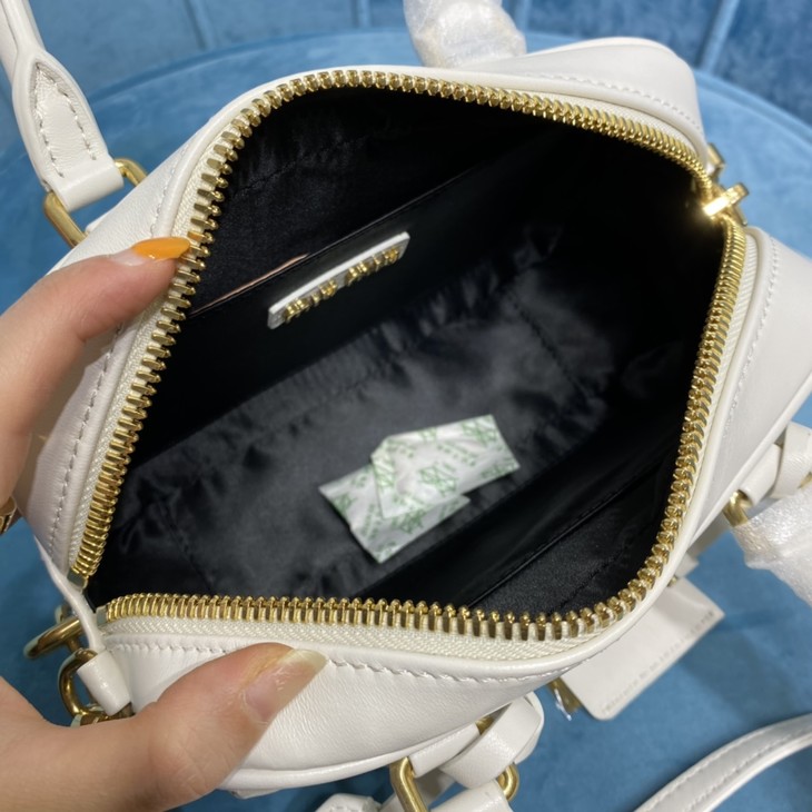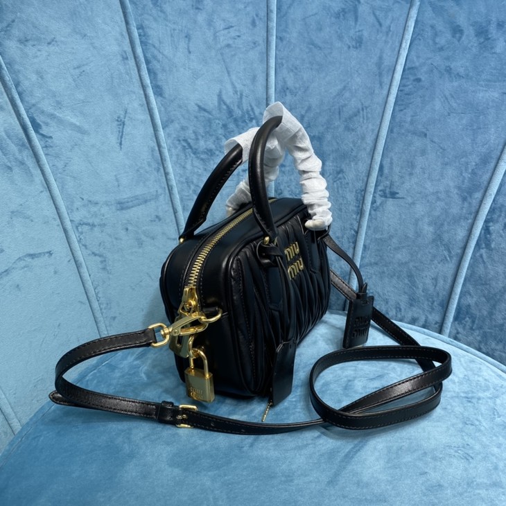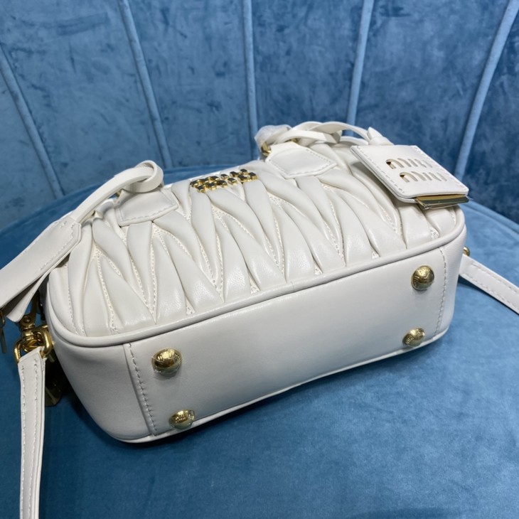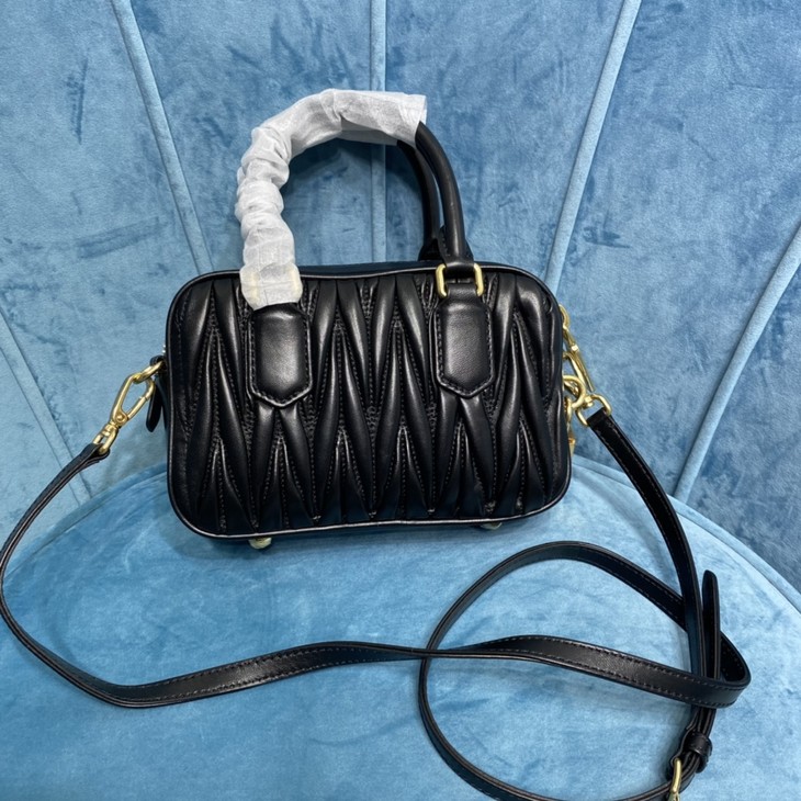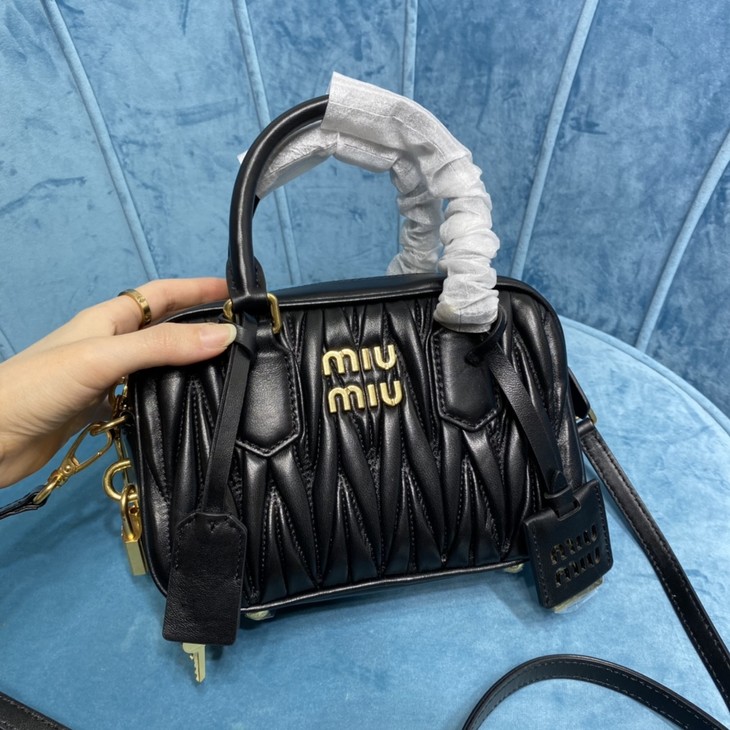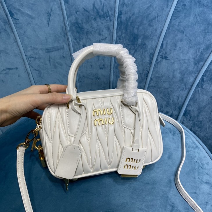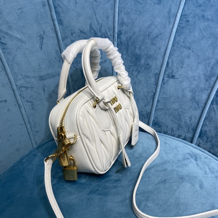 5BB123:MiuMiu新品too pretty保龄球手袋,采用进口小羊皮经典品牌标志性Matelasse纹理绣花,复古磨砂五金,保留了应有的俏皮感,包型整体硬挺有型,充满个性,可甜可盐,容量可光,各大时尚搏主几乎人手一个,火爆程度不亚于之前的MiuWander,颜色多多尺寸:19X13X6CM,配原版包装