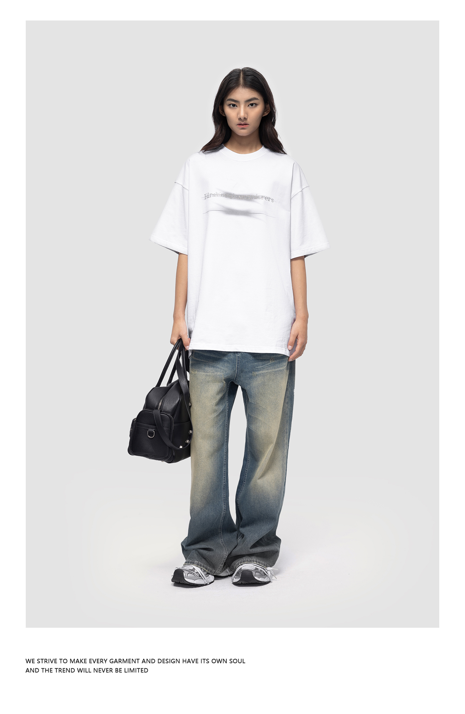 FDR官方店 幻影印花烫钻先锋小众情侣装短袖t恤男女夏季美式上衣