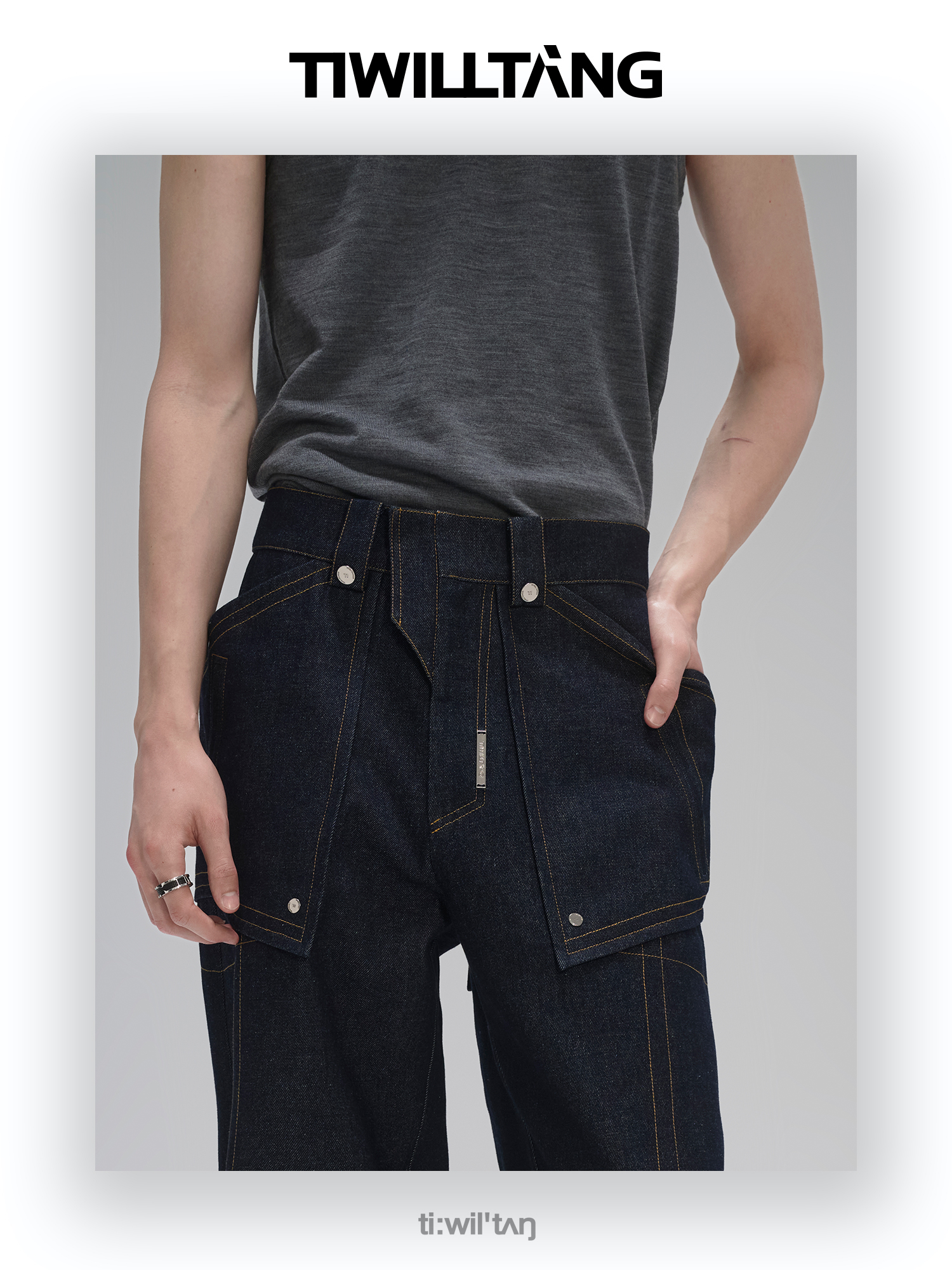 启世录TIWILLTANG“溯御垚寂”暗门襟镂空拼接T恤小众高级短袖