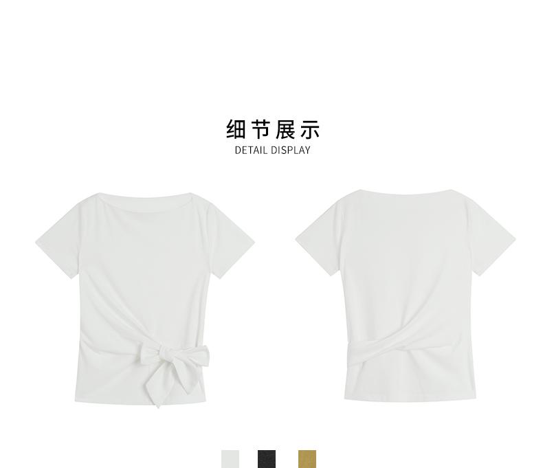 N°28 夏季新款法式高级感棉短袖T恤 宽松慵懒风宽领纯色上衣895251T522