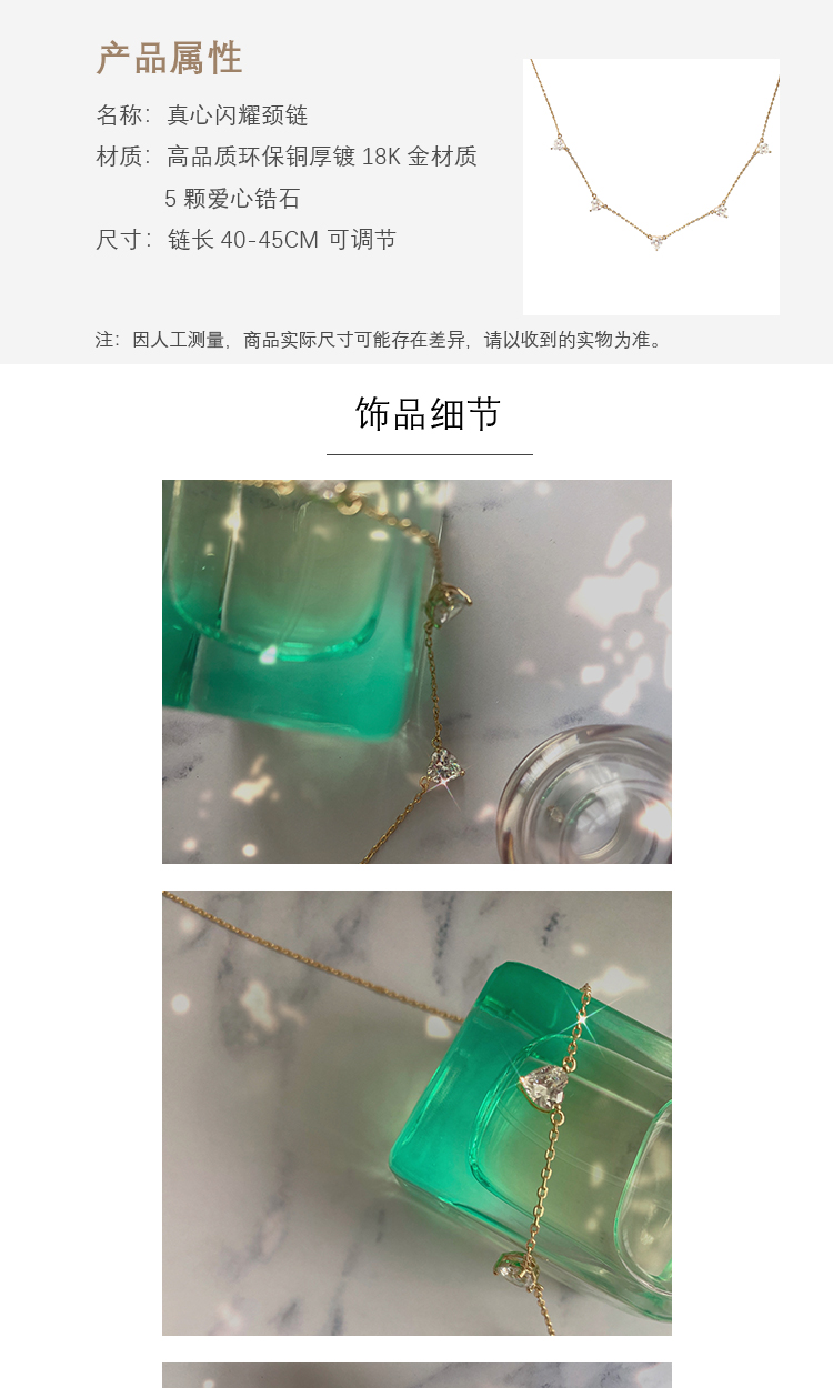 LHWINDSOR 真心闪耀颈链简约时尚爱心项链ins轻奢镀金锁骨链