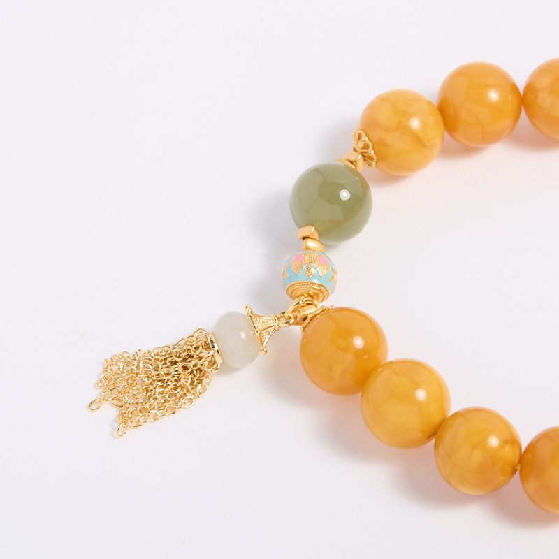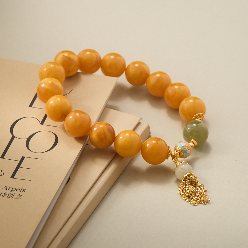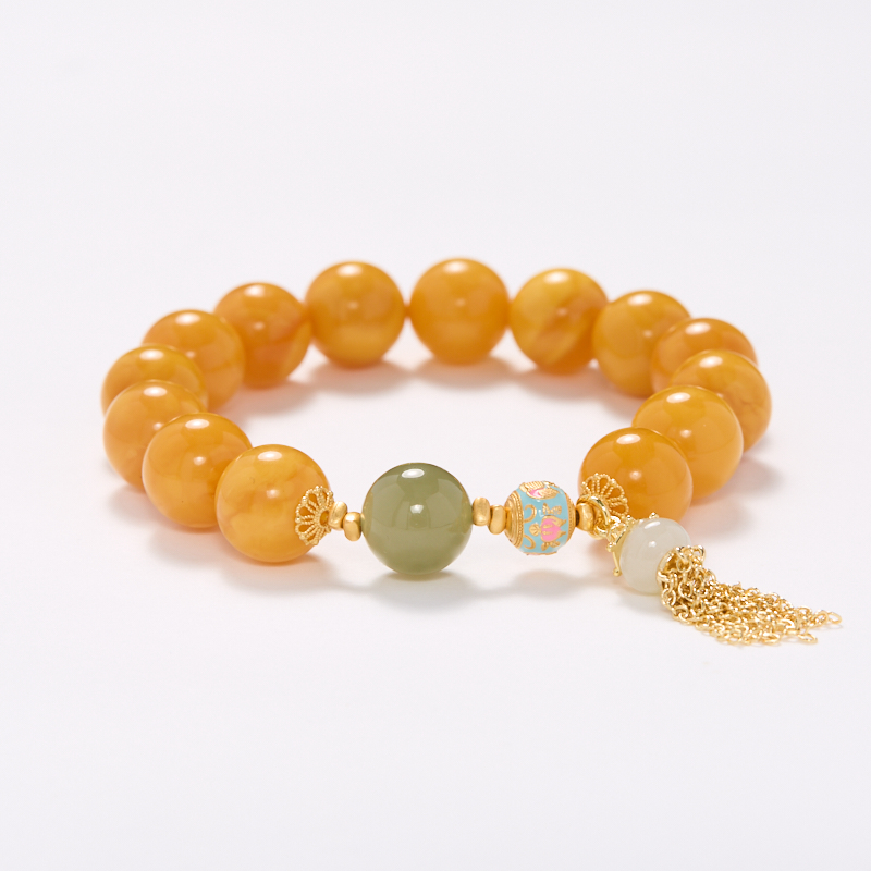 普陀山【蜜蜡】12mm老蜜蜡 和田玉 翡翠八角亭流苏 手链设计款手链