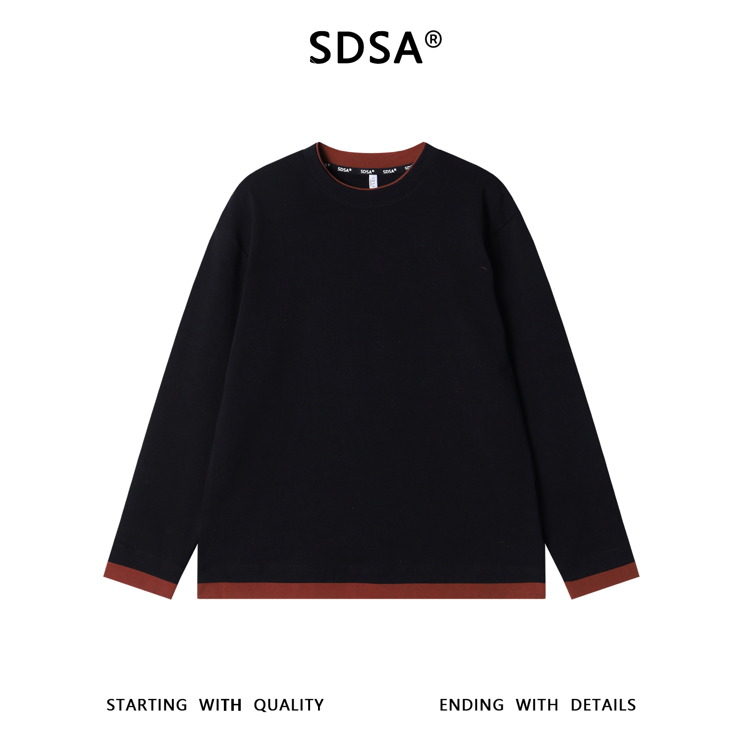 T5055SDSA男士秋冬新款痞帅男装简约撞色假两件圆领长袖T恤百搭时尚潮