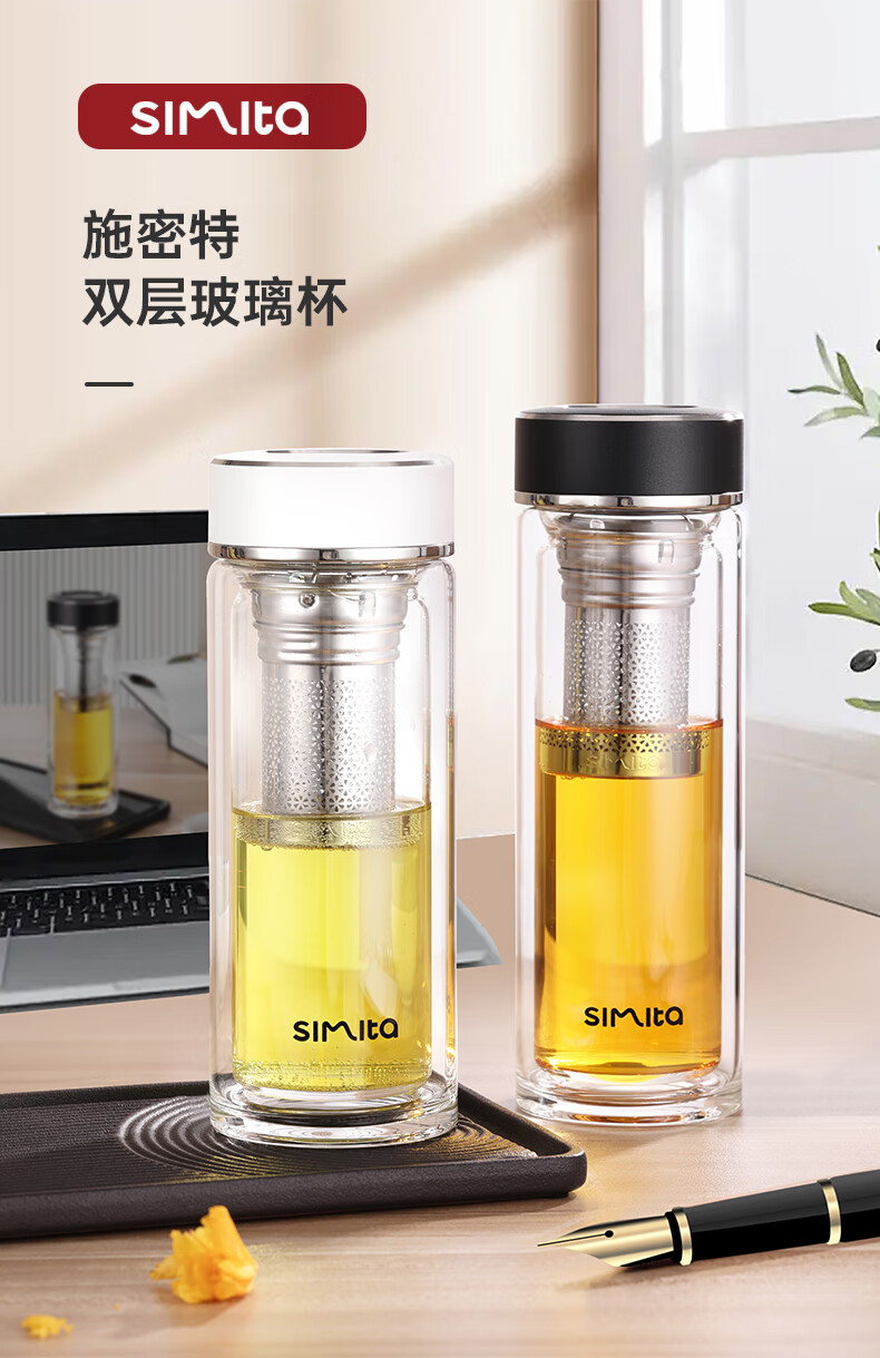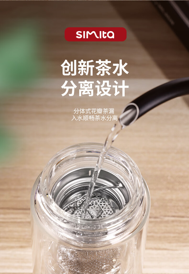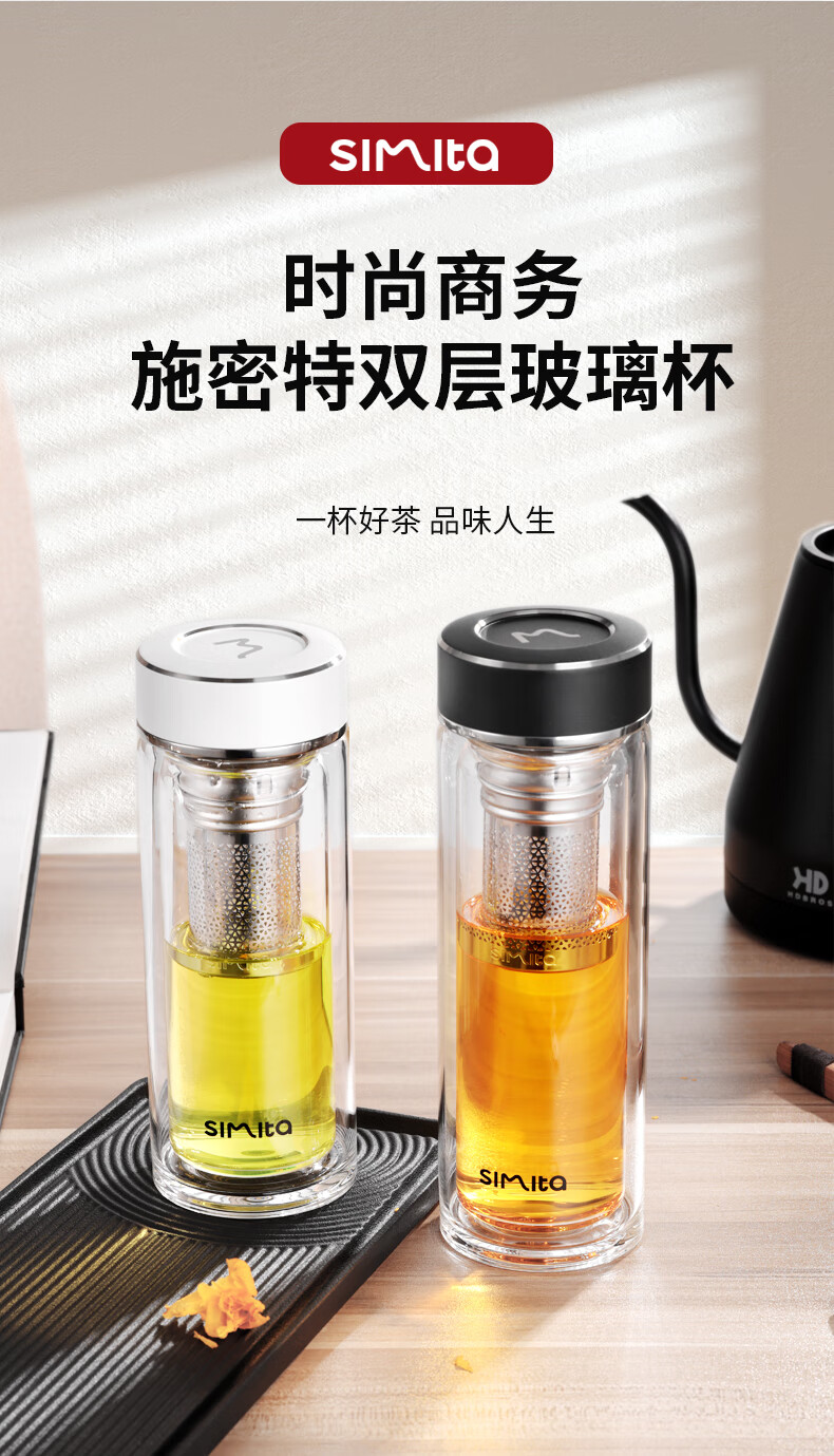 施密特(simita)双层玻璃杯茶水分离泡茶男女士商务办公车载便携带茶仓 MBL7002-033A/036A