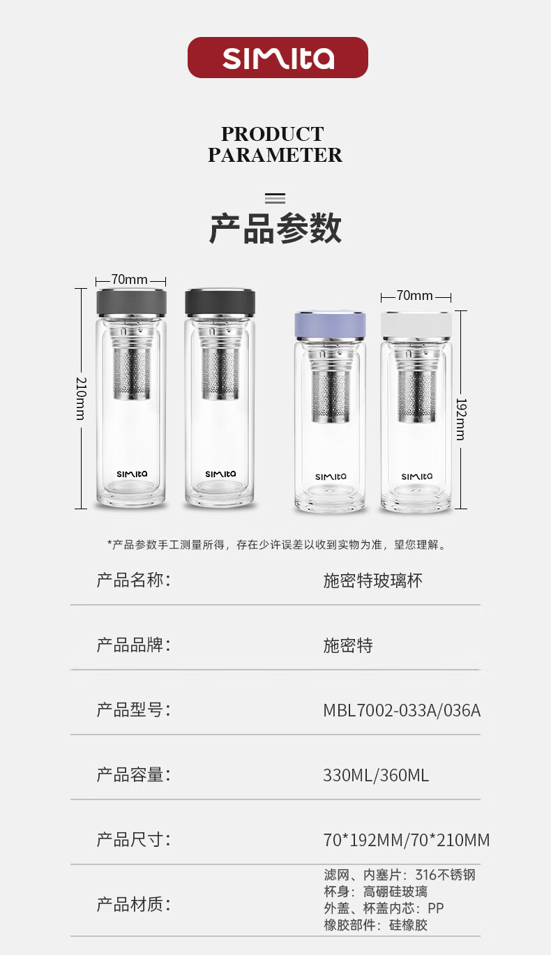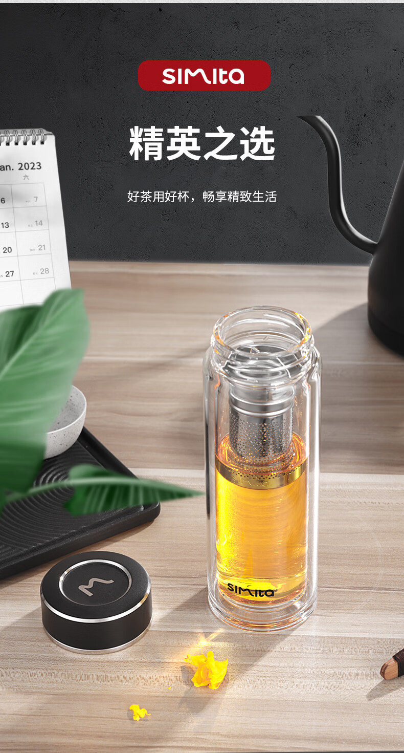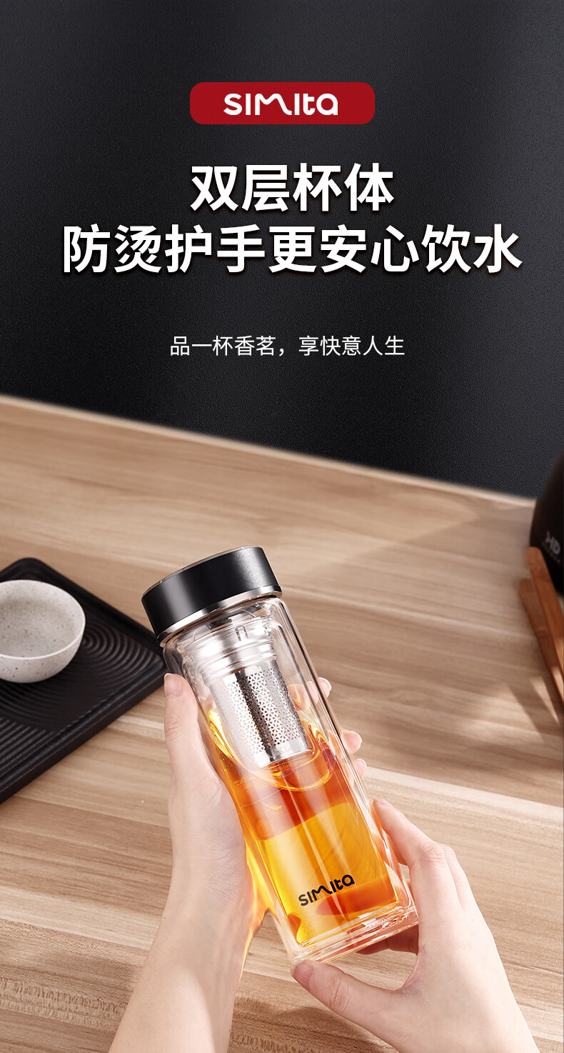 施密特(simita)双层玻璃杯茶水分离泡茶男女士商务办公车载便携带茶仓 MBL7002-033A/036A