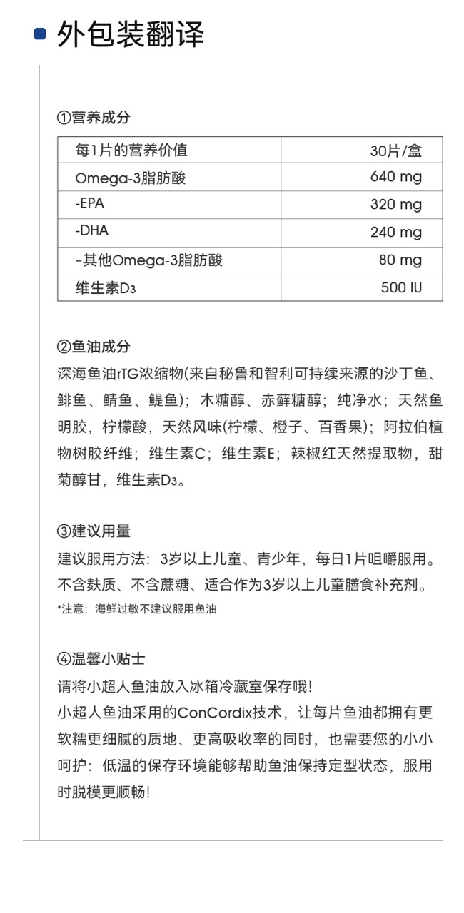 【解先生专属】WHC小超人儿童鱼油深海Omega3补脑DHA维生素D3记忆力免疫力30片