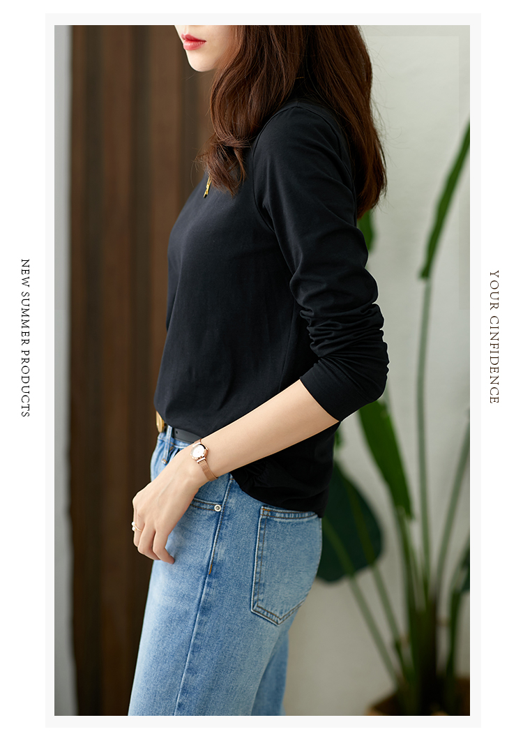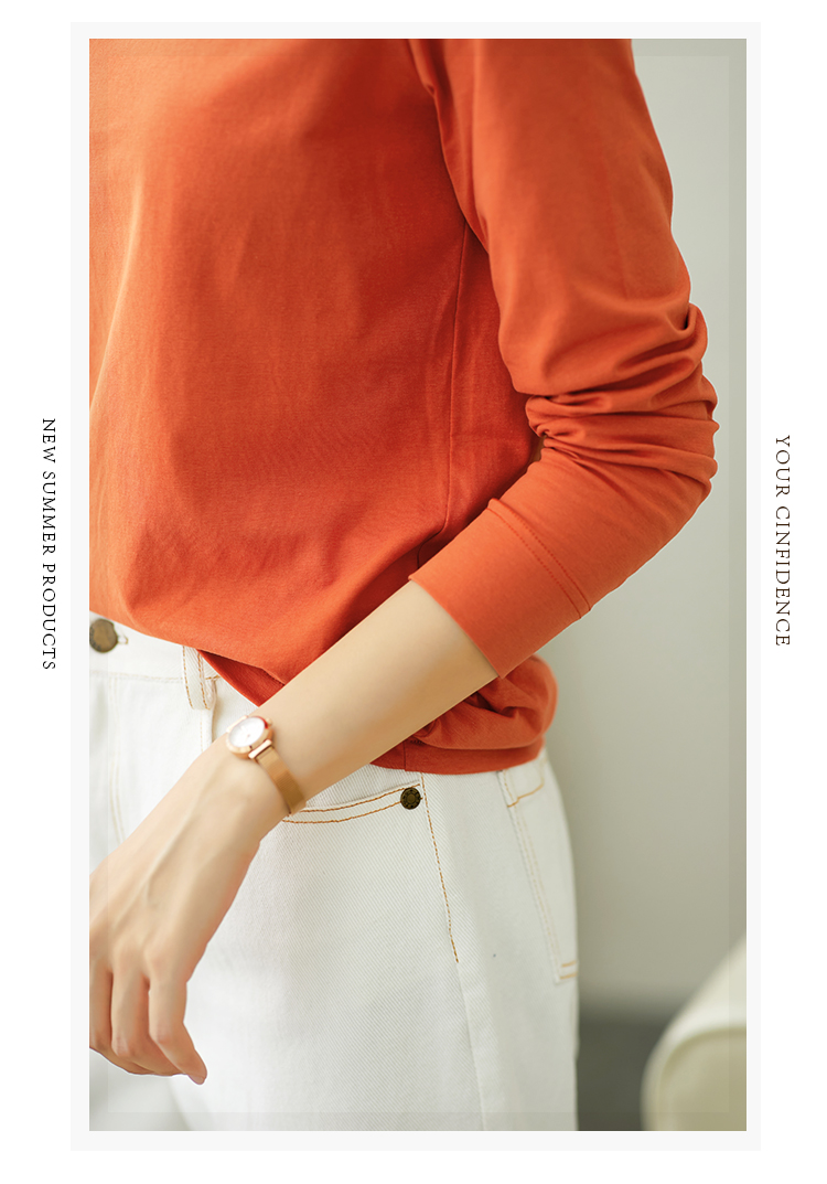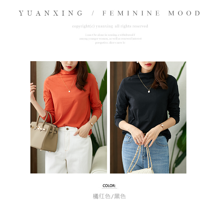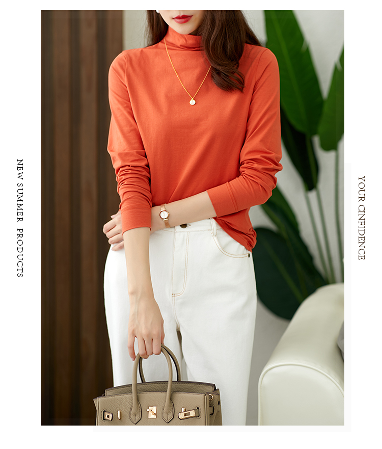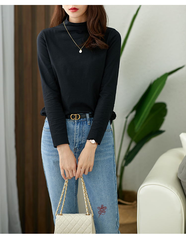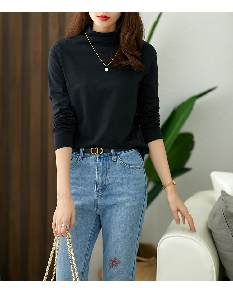 UG【现货7天】半高领长袖T恤女2023新款韩版宽松打底衫时尚女士内搭上衣