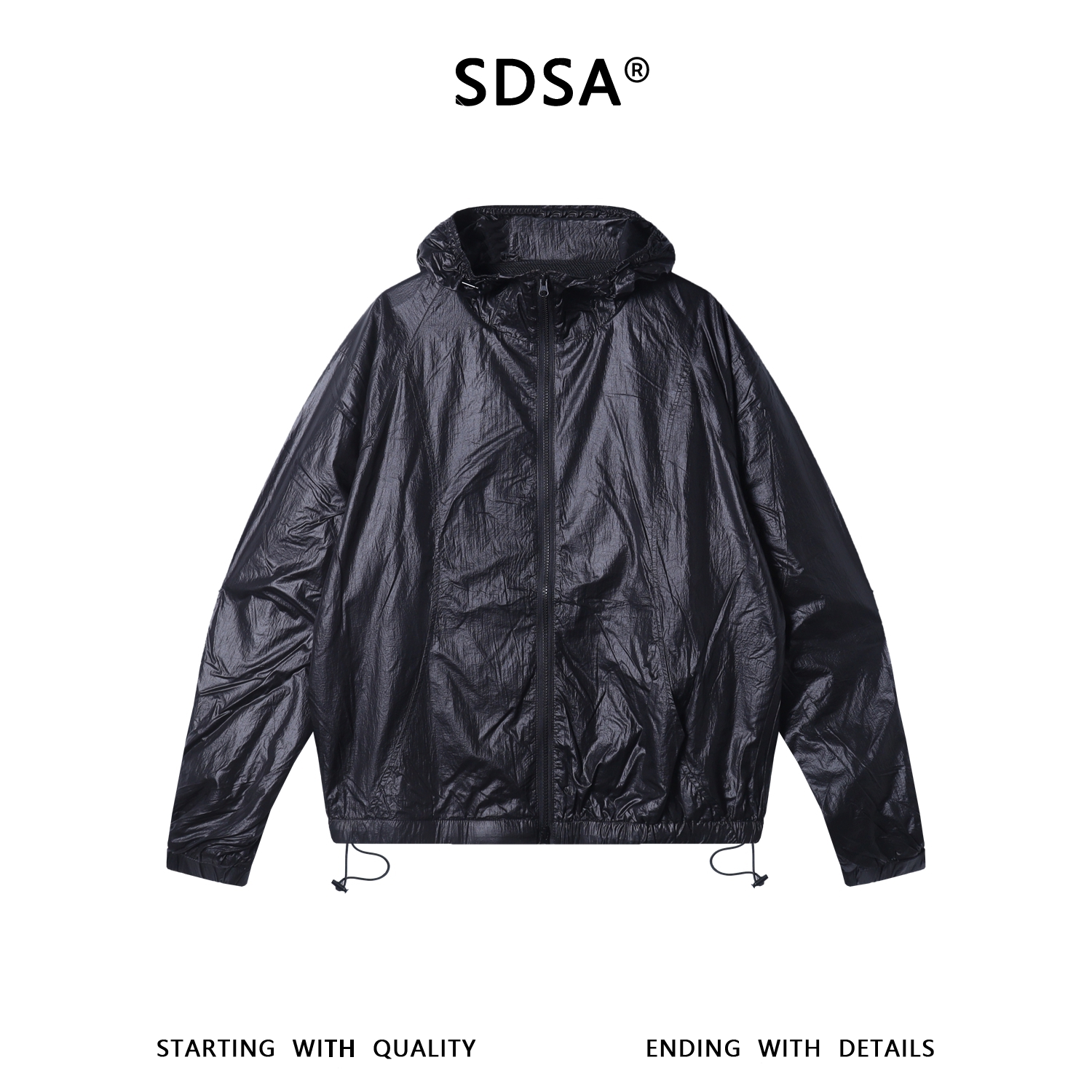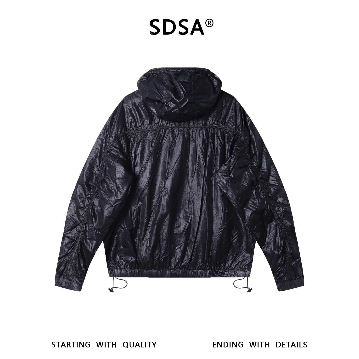 25208SDSA秋冬新款痞帅男装褶皱下摆松紧设计拉链立领连帽夹克外套百搭