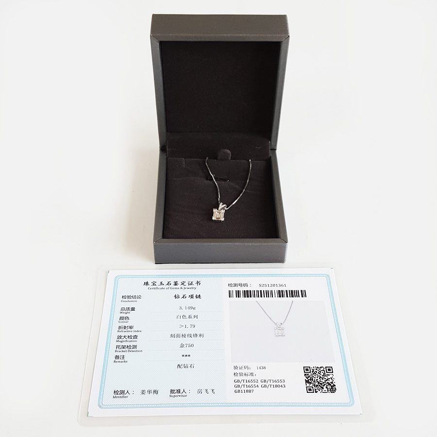 AU750白金经典时尚0.44克拉群镶钻石吊坠项链14.0*6.9*3.4MM(皆取最大值)链长:40CM 171225NJS76