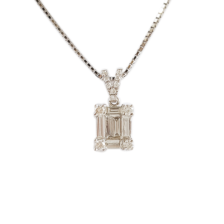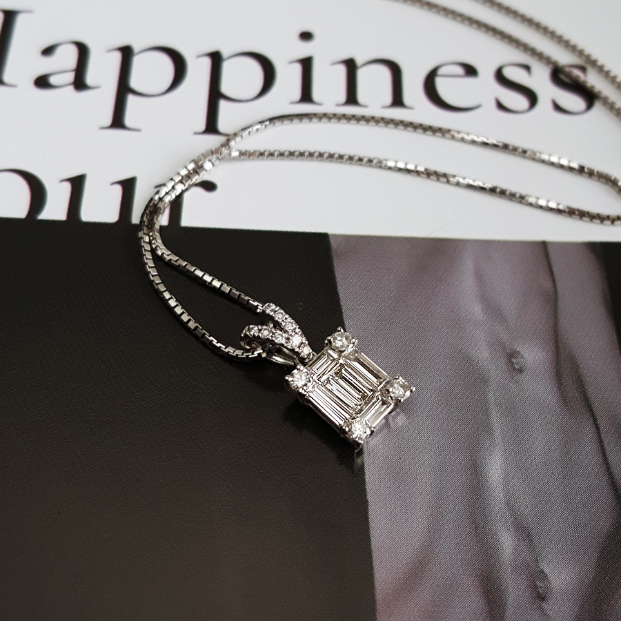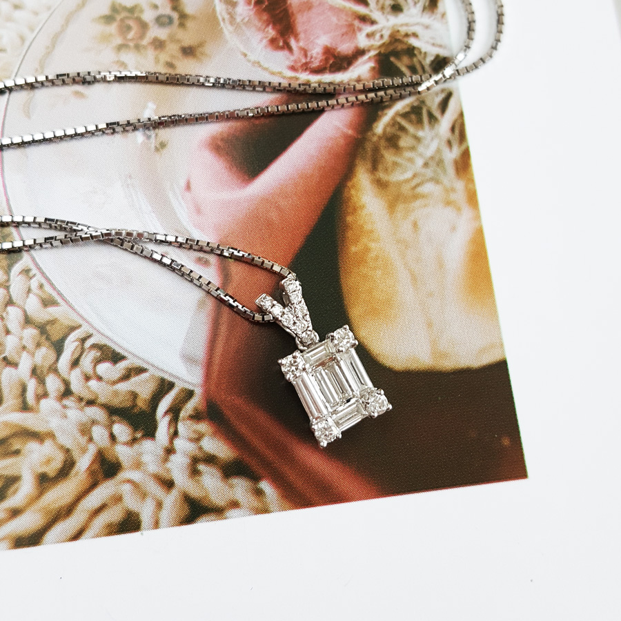 款式 | AU750白金经典时尚0.44克拉群镶钻石吊坠项链 |