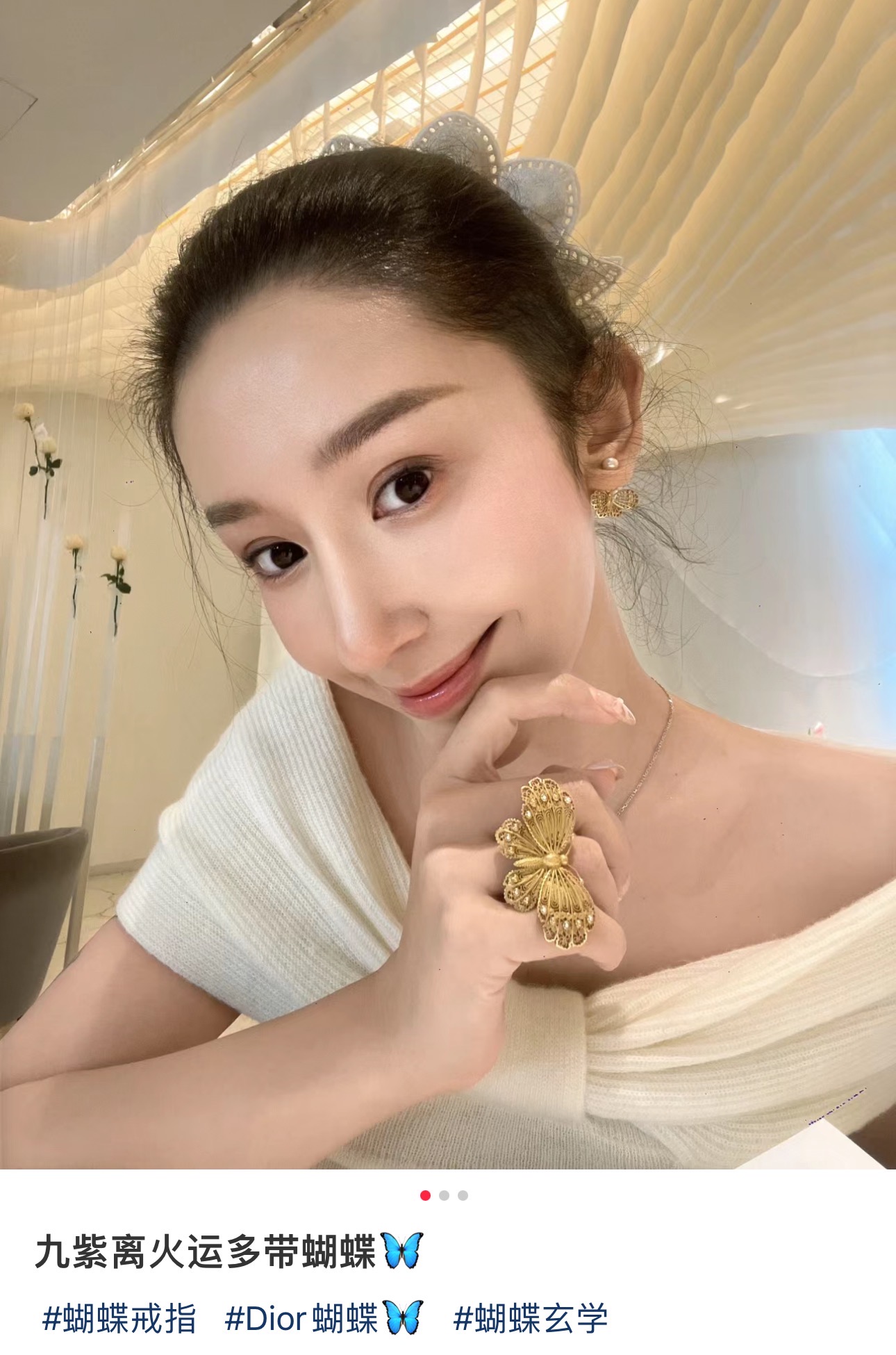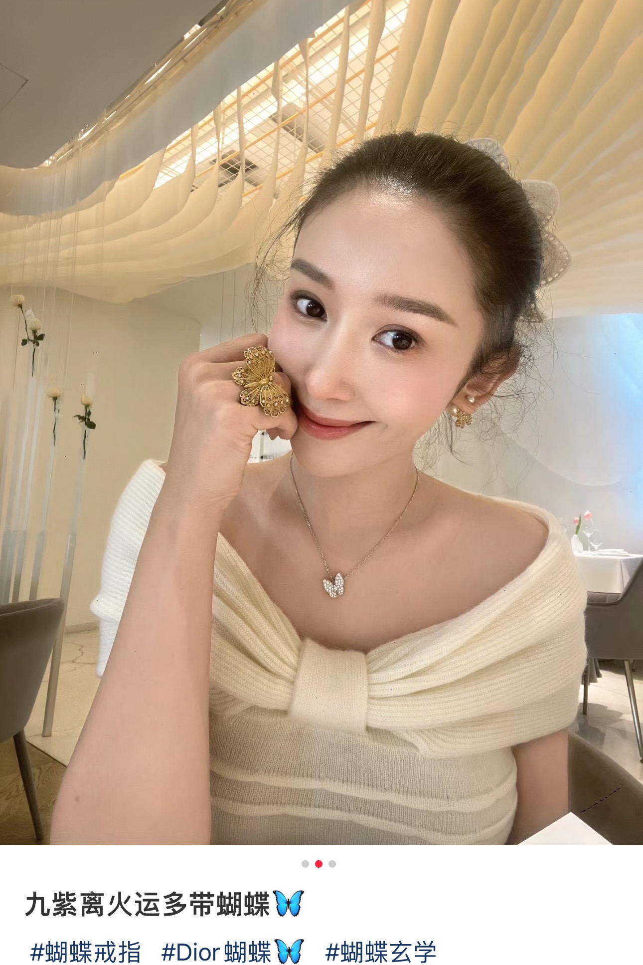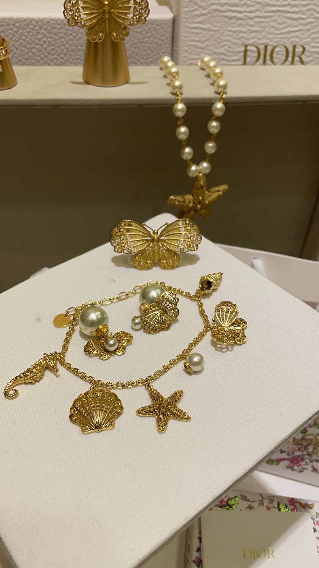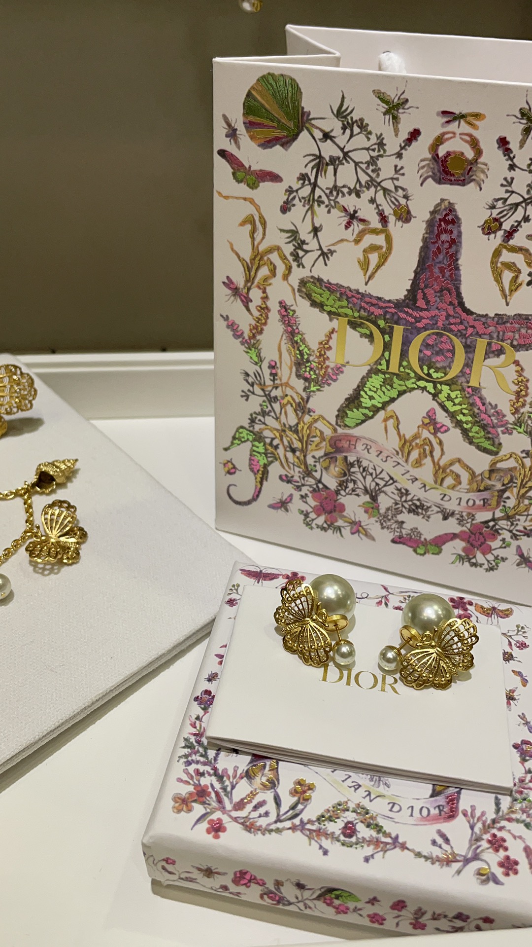 D家 25年新款鎏金蝴蝶珍珠双球耳环