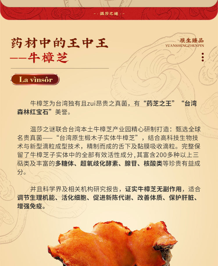 温莎之谜原生臻品台湾牛樟芝滴丸解酒护肝片野生椴木胶囊原装正品