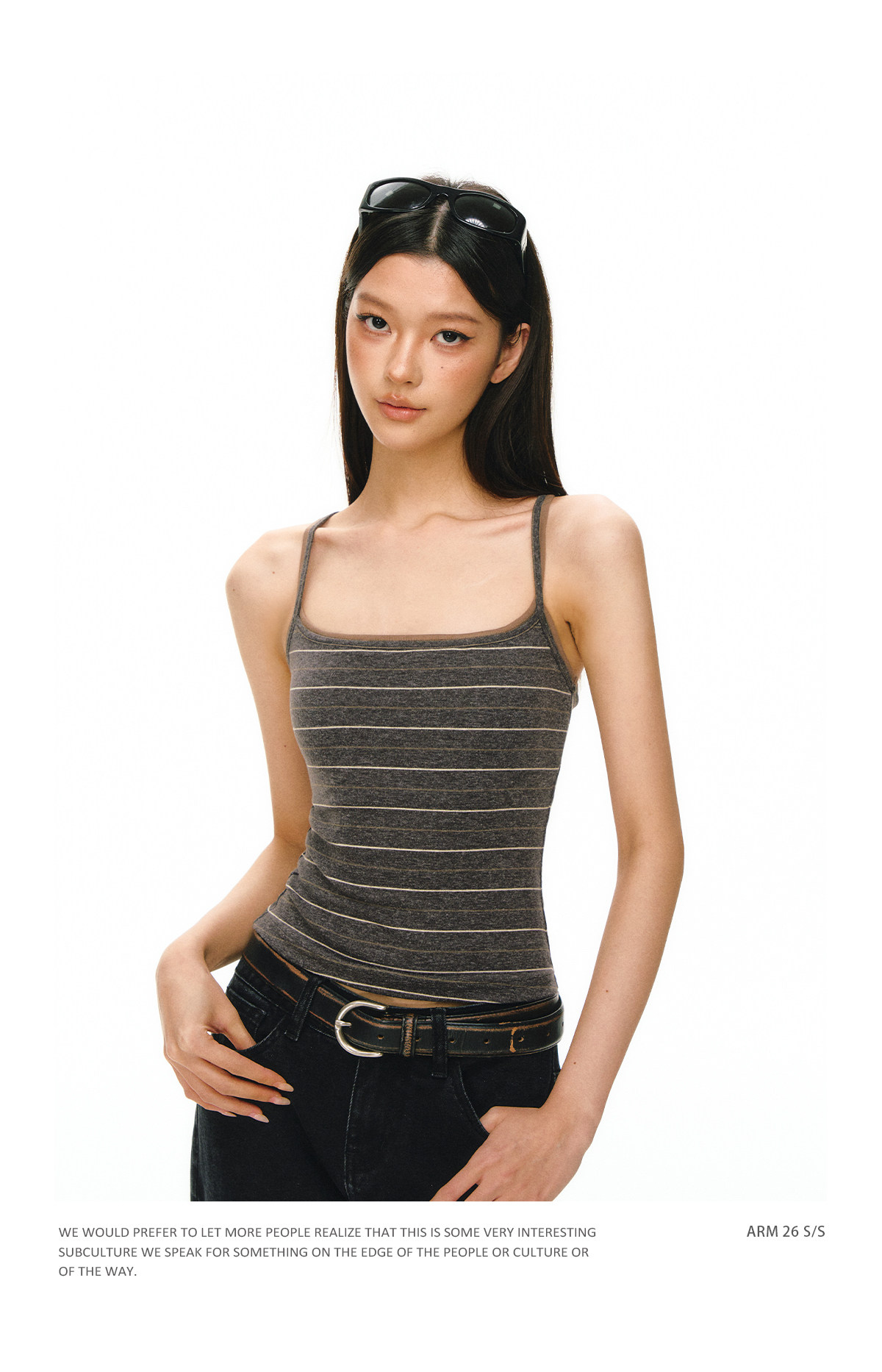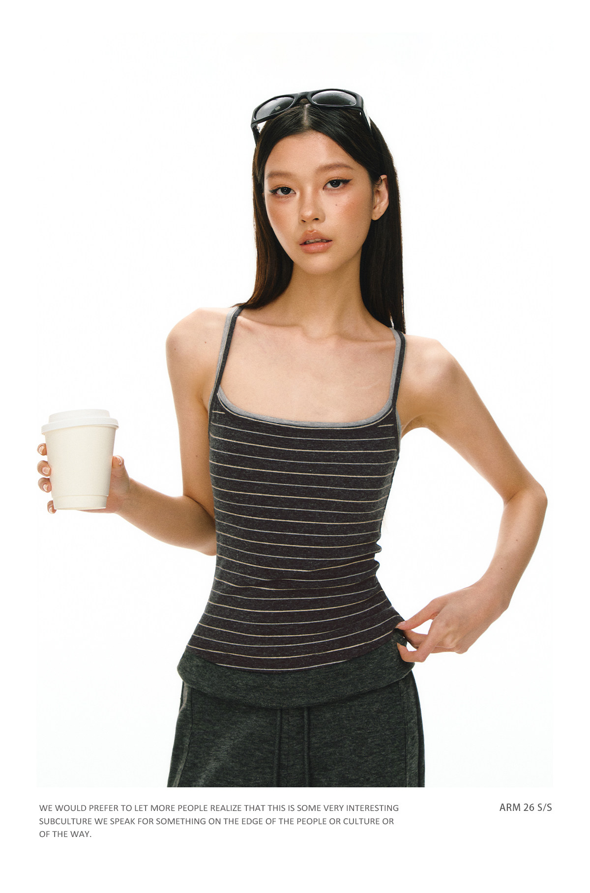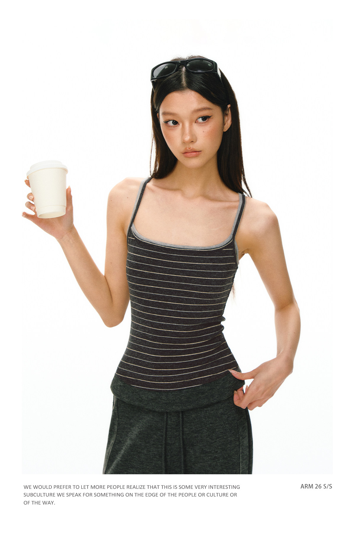 Ariseism 美式复古假两件条纹吊带背心女夏季新款上衣