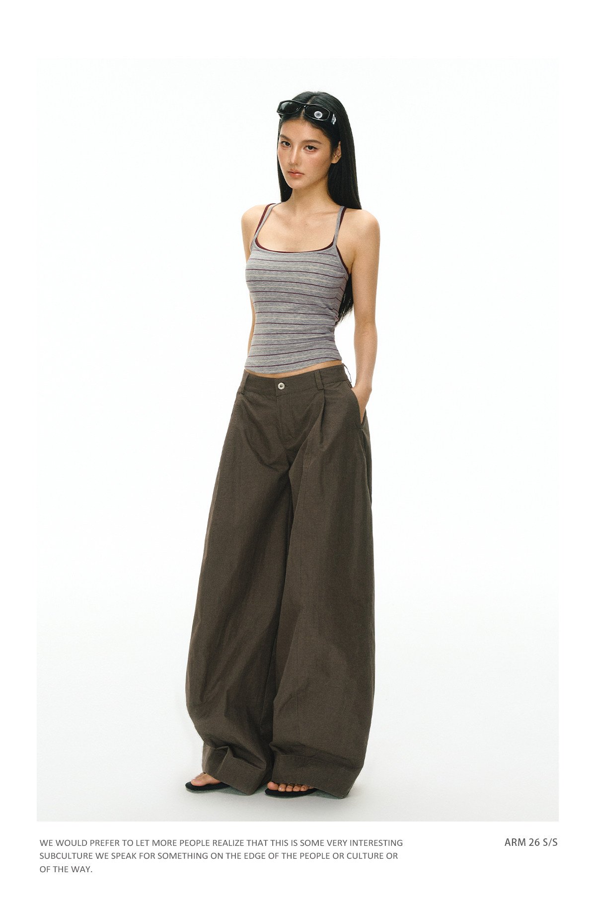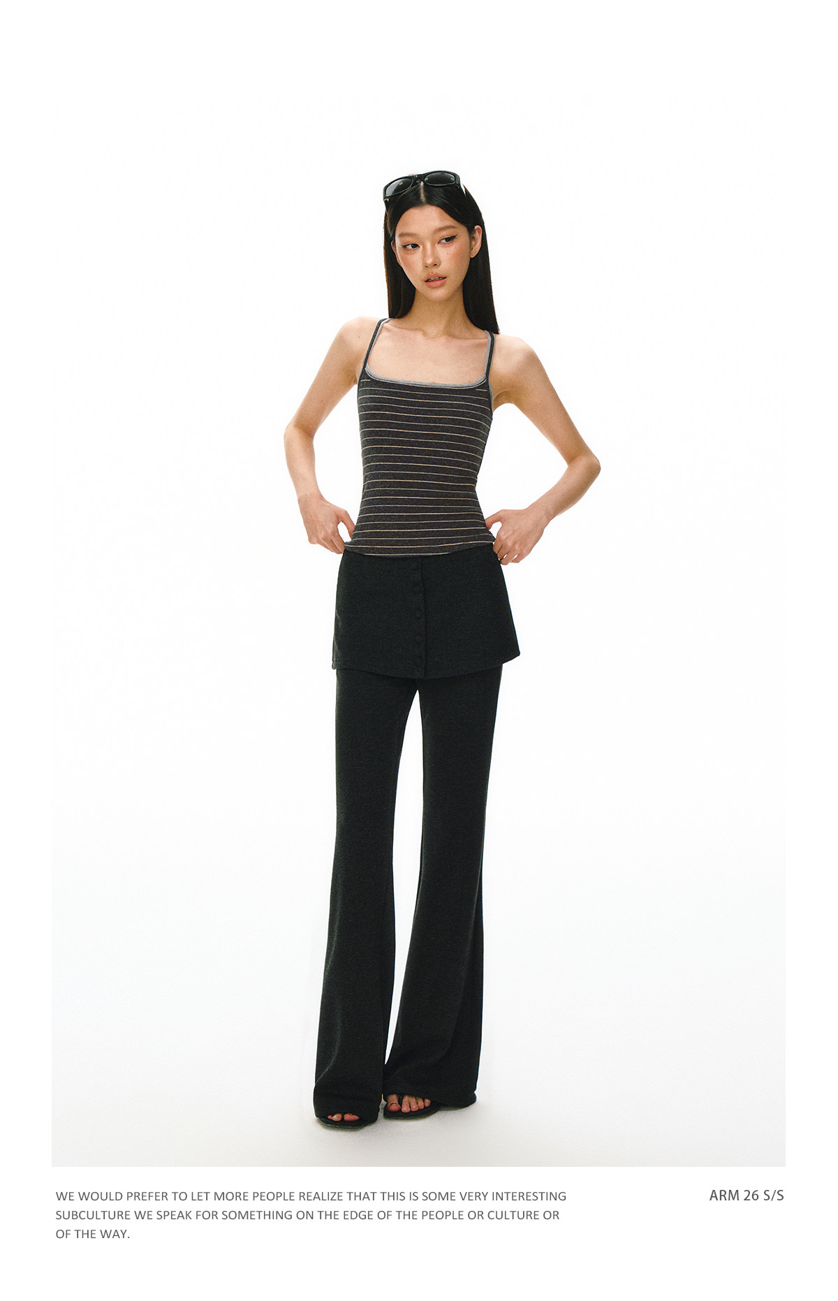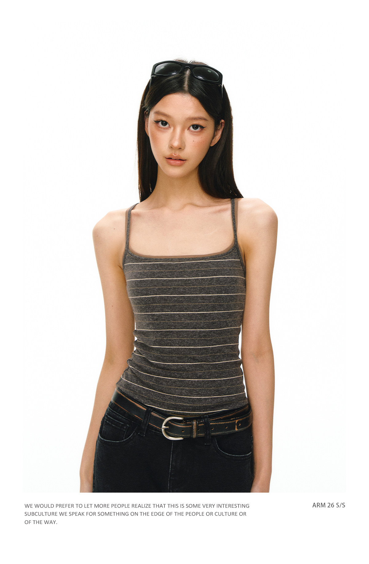 Ariseism 美式复古假两件条纹吊带背心女夏季新款上衣