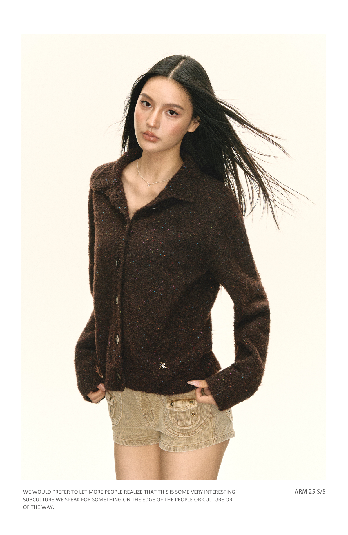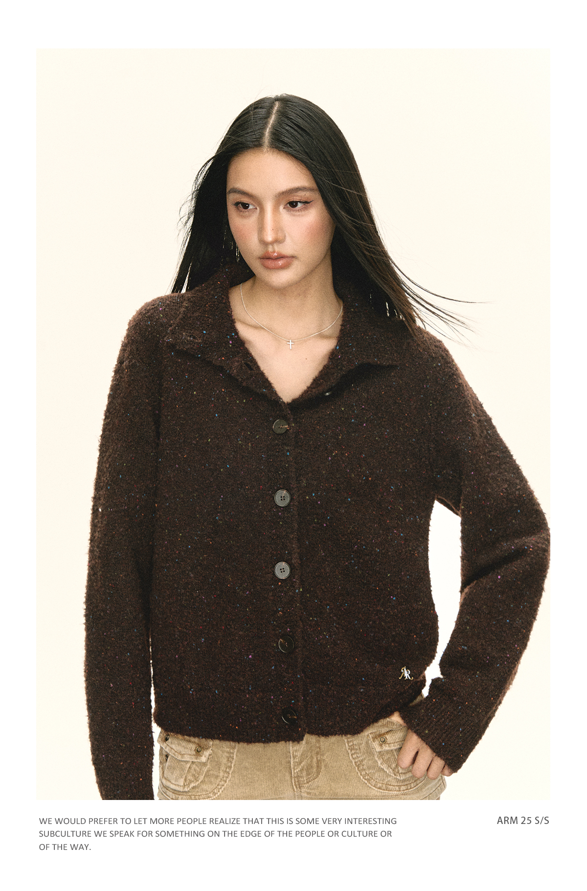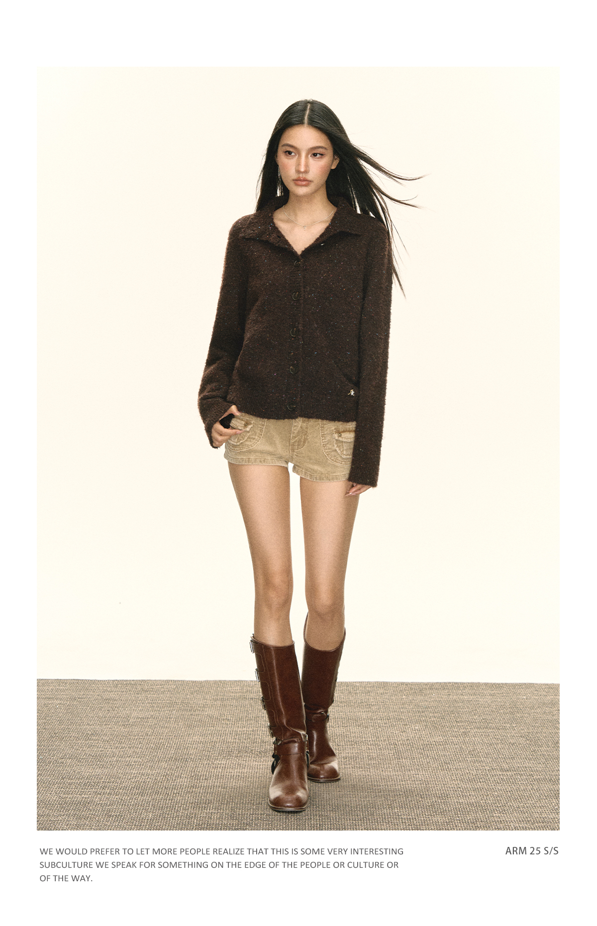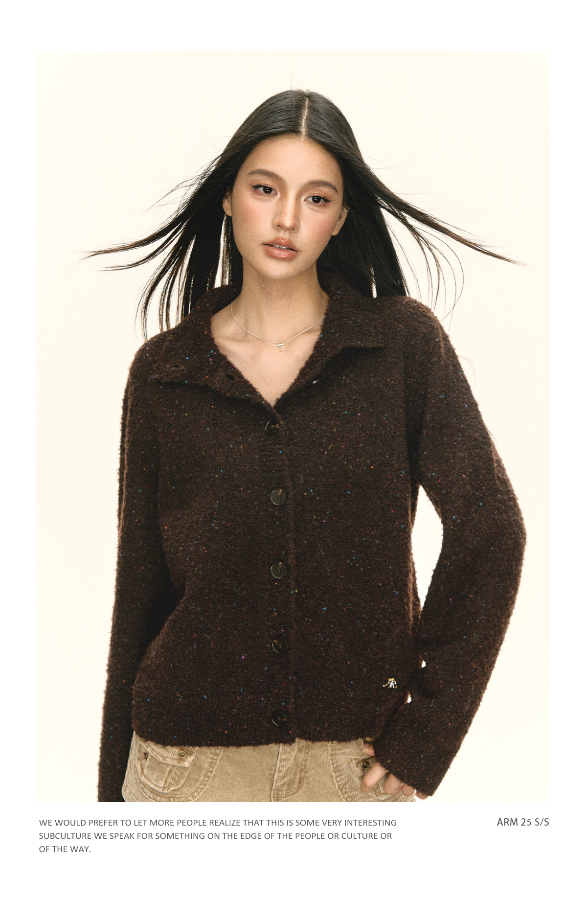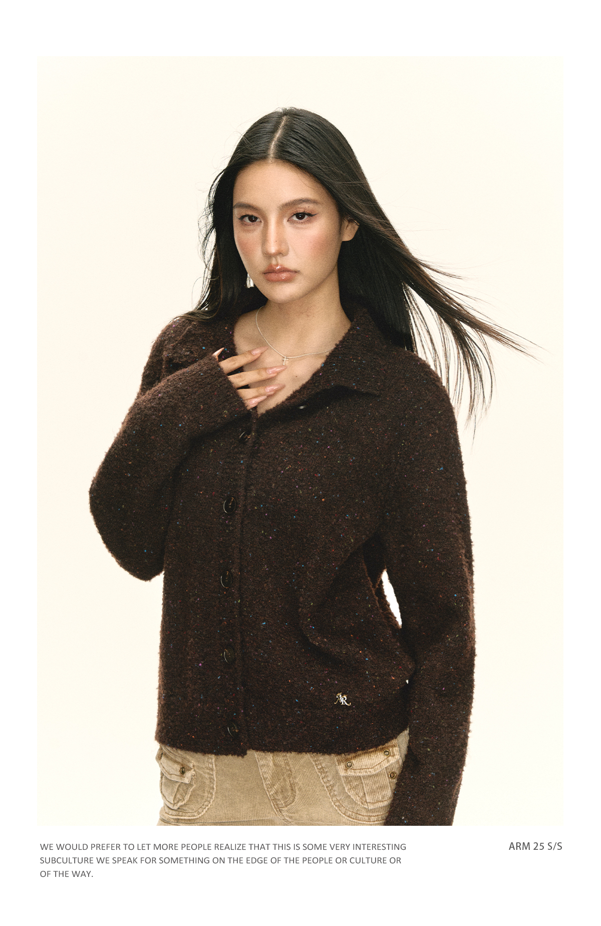 Ariseism 美式复古翻领开衫毛衣外套女秋季新款上衣