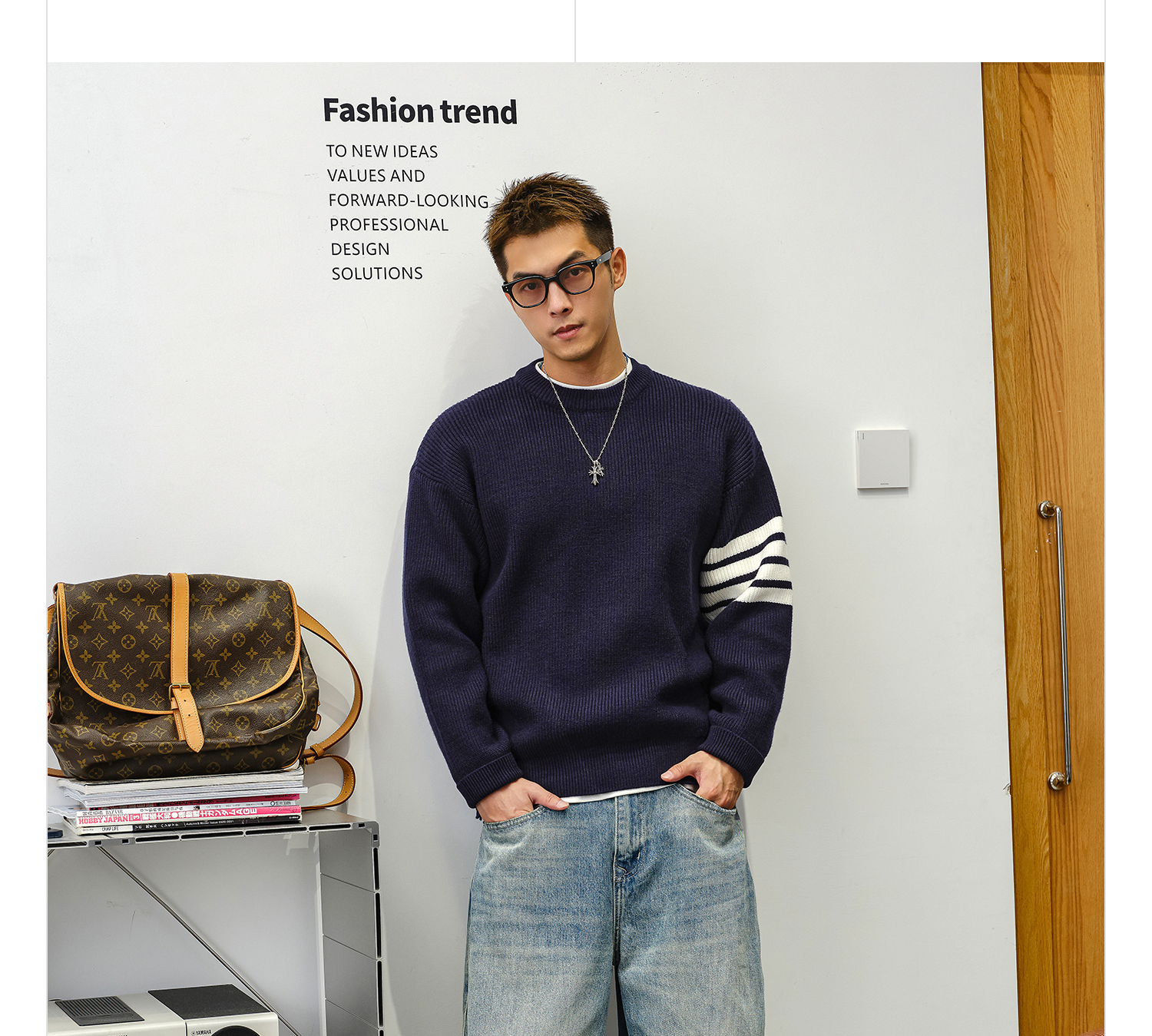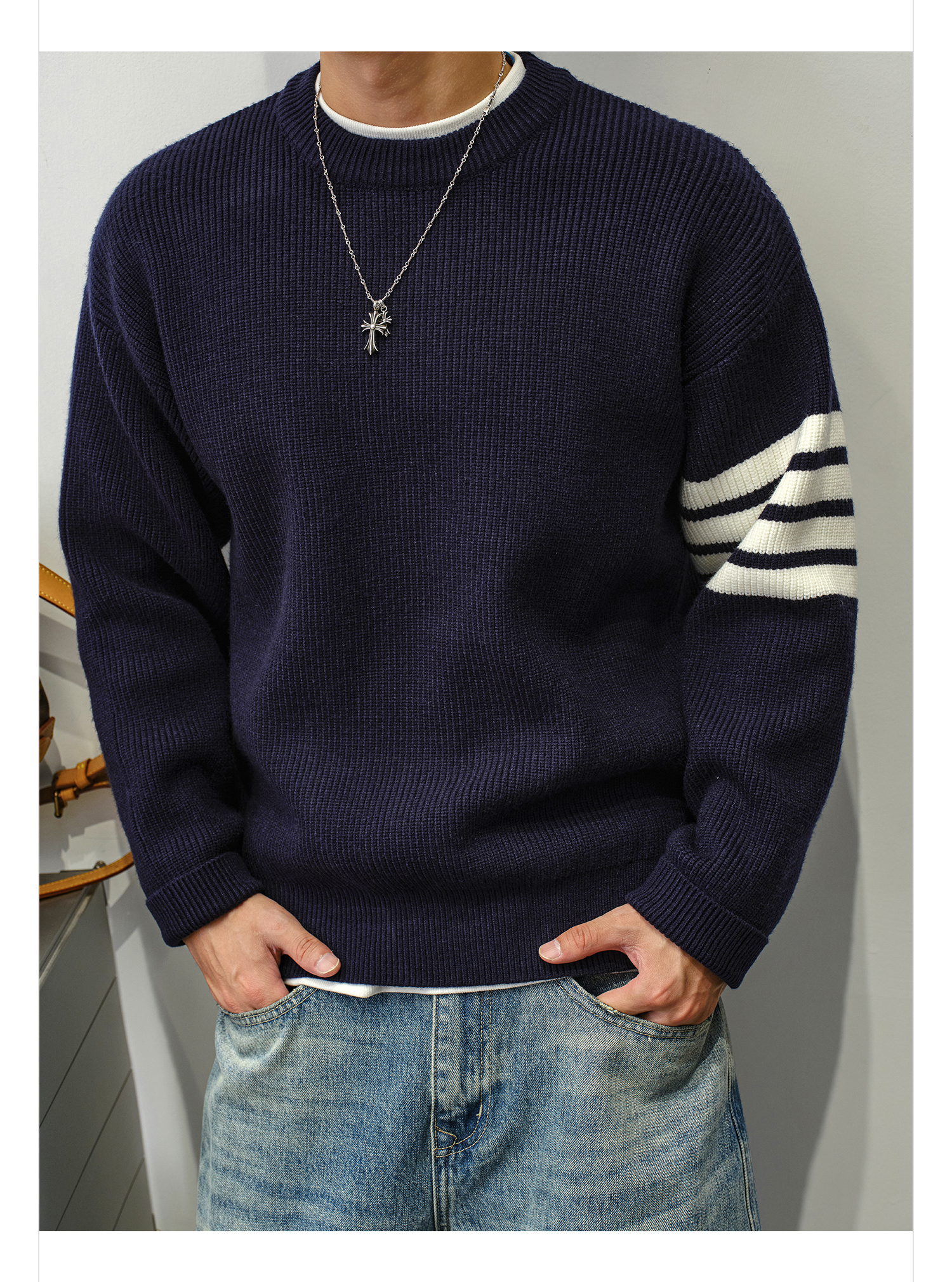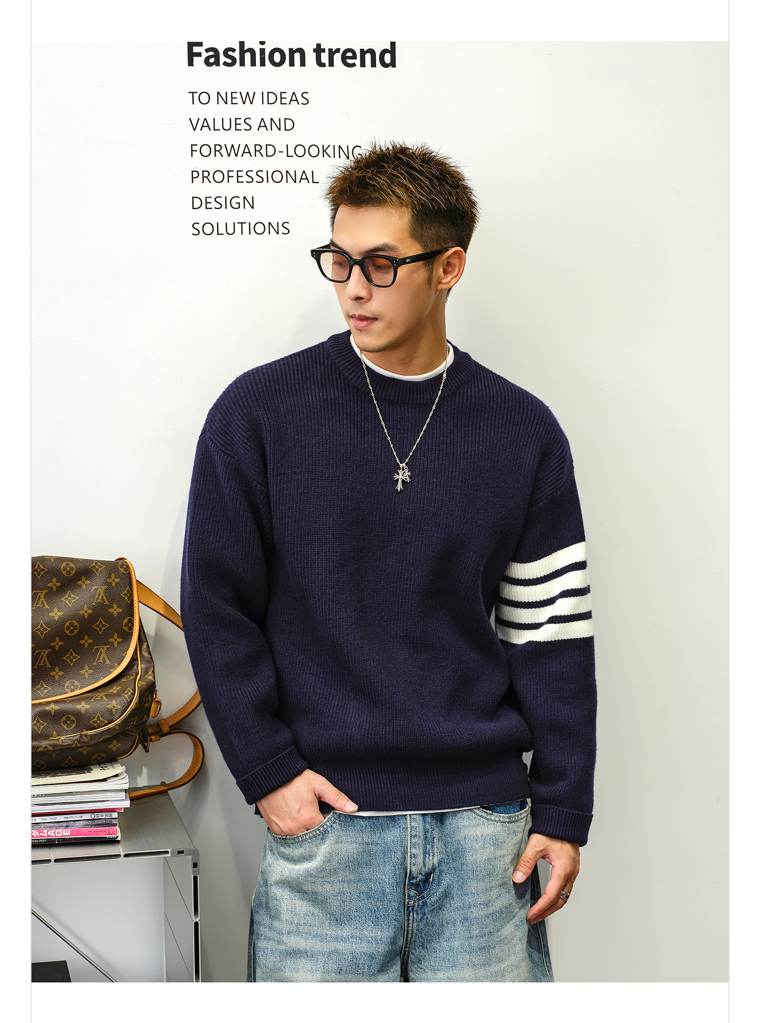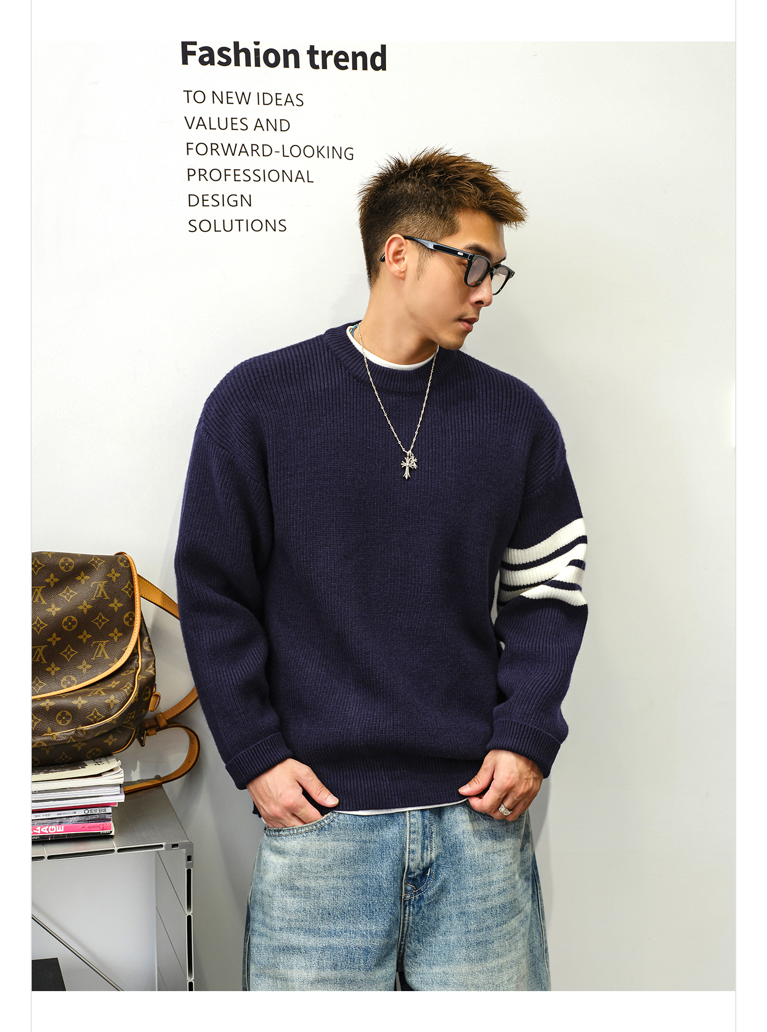 徐太浪【780g重磅 撞色条纹】肌理感针织毛衣男秋季男装通勤上衣